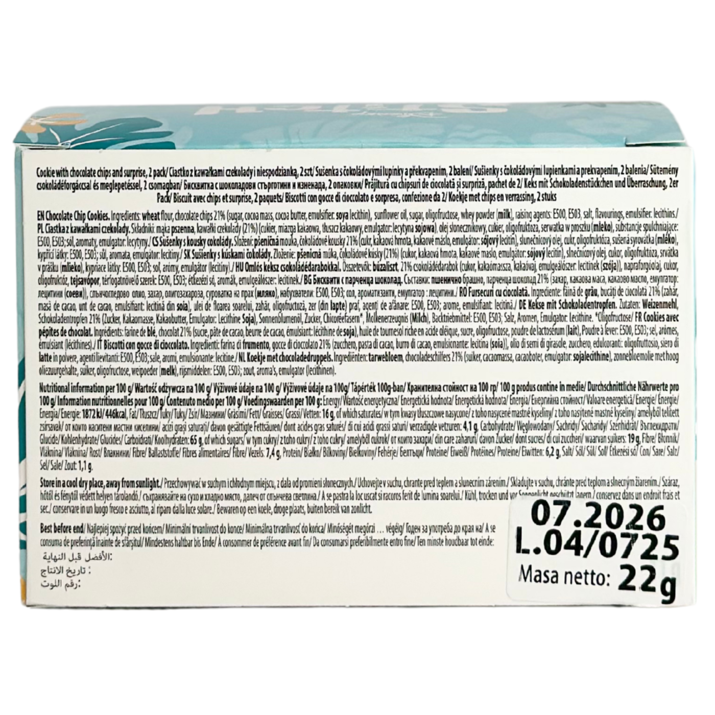 Печиво з шоколадними краплями Disney Stitch — це смачний і веселий перекус для дітей. У кожному наборі — 2 тубуси по 11 г зі смачним хрустким печивом і приємним сюрпризом усередині. Ідеально підходить для маленьких шанувальників персонажа Stitch та всіх, хто любить поєднання іграшки та солодощів.