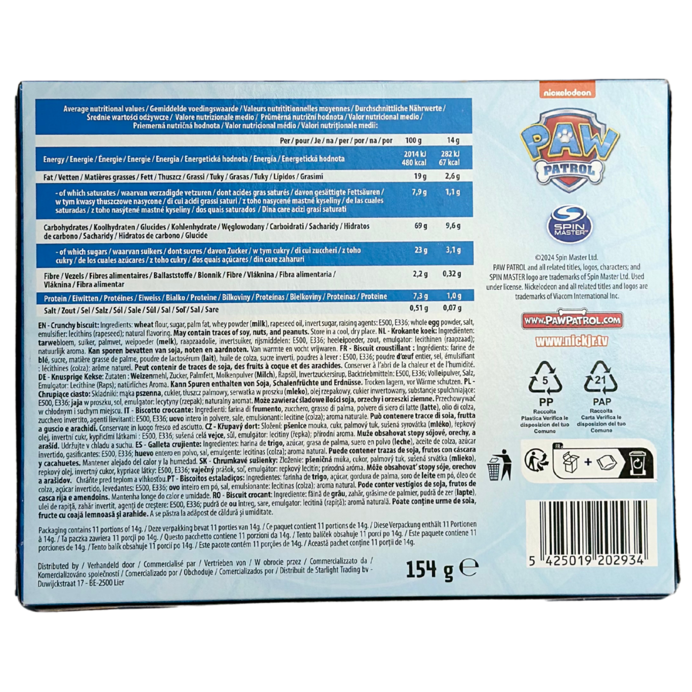 Печиво School Cookies Paw Patrol 154g - це ніжне печиво та дуже цікаве своїм виглядом яке точно оцінять маленькі поціновувачі цього мультфільму. Таким чудовим печивом ви точно подаруєте дитині посмішку. Всередині упаковки знаходяться 11 шт. печиво в індивідуальному пакуванні. Таке печиво чудово давати діткам в школу чи просто брати з собою на прогулянку.