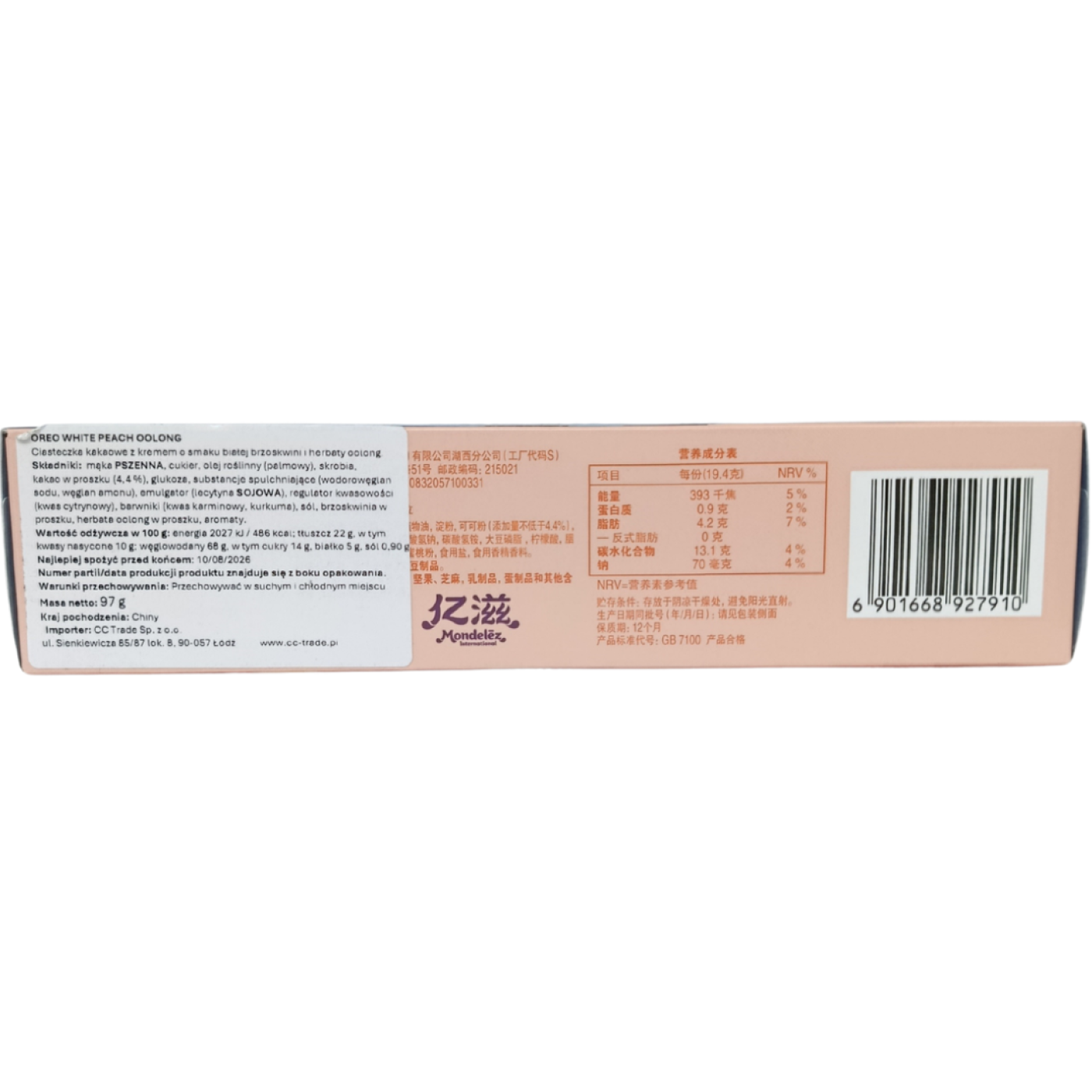 Традиційне шоколадне печиво Орео з чудовою кремовою начинкою зі смаком персика захопить з першого укусу будь-якого шанувальника цього печива. Неймовірна шовковиста, кремова текстура персикового крему надає йому неперевершеного смаку. В середині 2 індивідуальні пакування з тонким і хрустким печивом, тому ним можна насолоджуватись у будь-який момент або розділити з друзями.