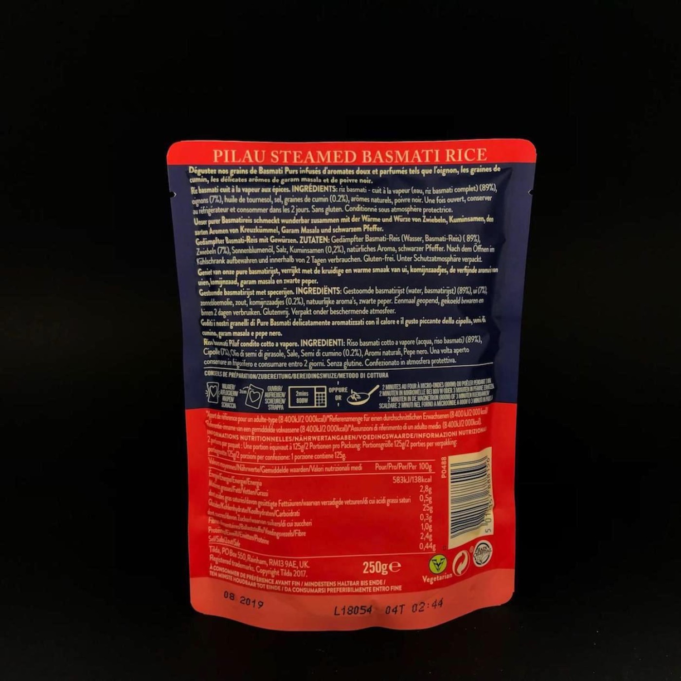 Indian style Pilau – це рис басматі від англійського виробника Tilda, приготований на пару. Окрім рису в складі містяться цибуля, соняшникова олія та кмин, який додає особливого смаку та користі, він містить мінеральні речовини, допомагає впоратись з проблемами шлунку і виводить мокротиння. Це продукт швидкого приготування, що дуже зручно, коли немає часу на готування їжі. В ньому не міститься глютен, також його можна споживати усім, хто притримується вегетаріанської дієти.