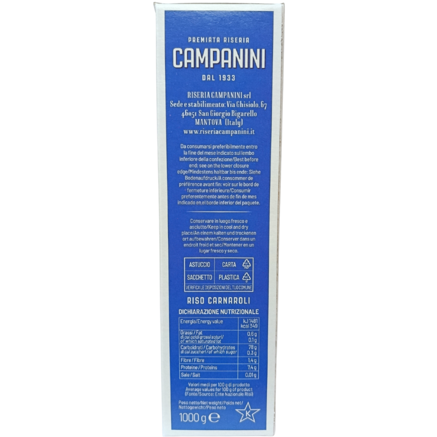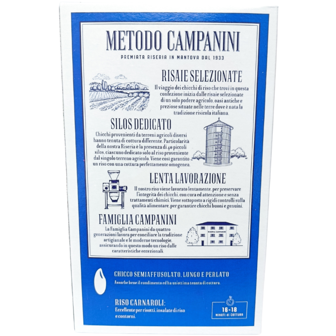 Карнаролі – це «молодий» сорт рису, який з’явився не більше 20 років тому, він походить з півночі Італії, де користується неймовірною популярністю. Riso Carnaroli відрізняється видовженою формою зерна та більшим вмістом крохмалю, має ніжний смак і містить велику кількість вітамінів групи В, РР, Р, а також мінеральних речовин та жирних кислот. Він рекомендується для профілактики серцево-судинних захворювань та очищення організму від шлаків і токсинів. В порівнянні з іншими видами, Карнаролі найкраще зберігає форму під час повільного приготування, тому він ідеально підходить для приготування справжнього різотто.