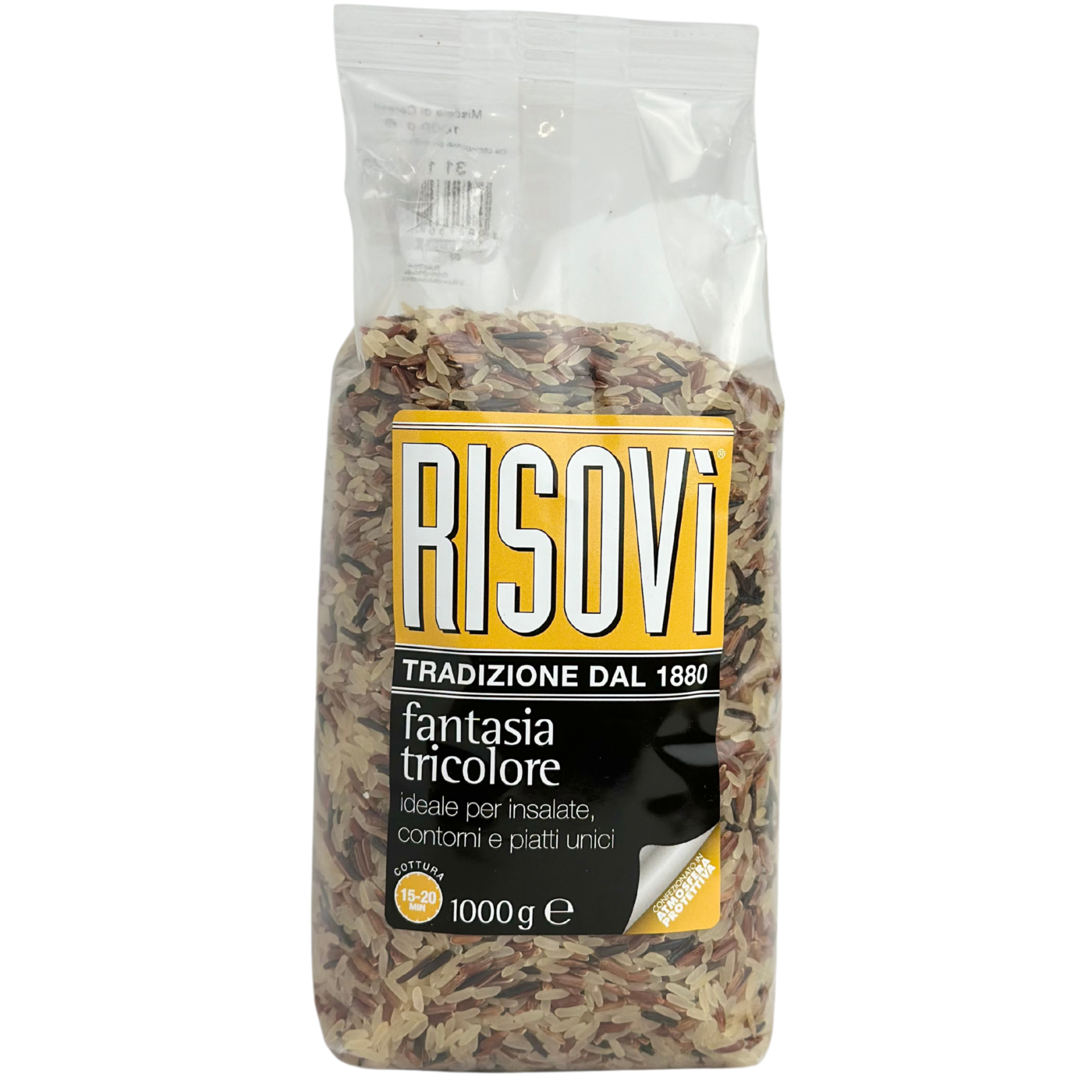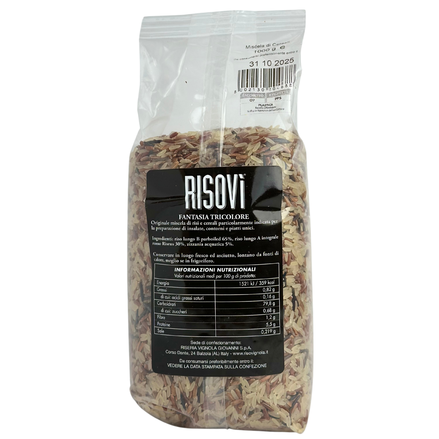 Італійський змішаний рис "Risovi Riso Fantasia Integrale" - це елітний продукт який славиться на всю планету своїми властивостями й унікальним хімічним складом. У ньому багато мінеральних речовин: кальцію й калію, фосфору та йоду, заліза. Пропарений рис - 65%, червоний рис — 30%. Ви можете використовувати всю фантазію Risovout для приготування салатів і смачних, унікальних і оригінальних гарнірів.