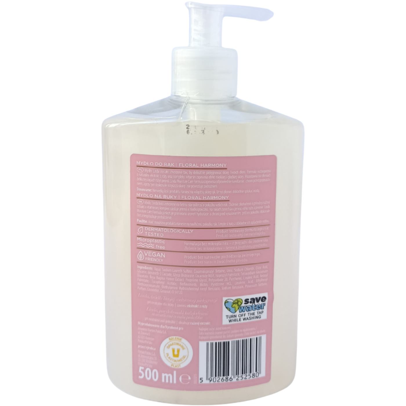 Рідке мило для рук Floral Harmony Linda ніжно очищає шкіру рук від забруднень, даруючи м’якість і відчуття комфорту після кожного миття. Аромат квіткової гармонії наповнює руки приємним ніжним ароматом, роблячи щоденну гігієну ще приємнішою. Формула легко піниться, швидко змивається і підтримує природне зволоження шкіри, не пересушуючи її.