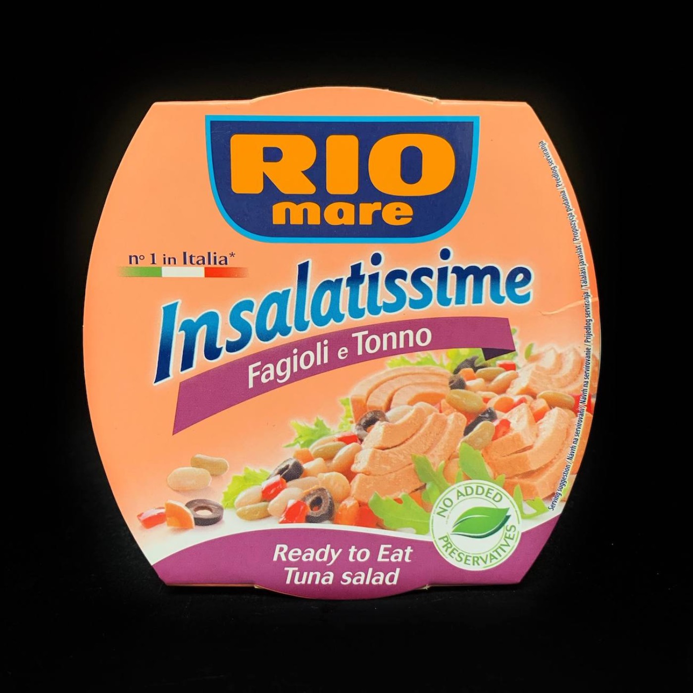 Італійський виробник Rio Mare пропонує готовий збалансований перекус, який наповнить енергією та наситить організм корисними речовинами. Insalatimissime Fagioli e Tonno – це салат на основі тунця з додаванням двох сортів квасолі, кукурудзяної олії, моркви, сочевиці, паприки, чорних оливок і солі. Він не містить консервантів і має чудовий смак, в якому вдало поєднується тунець з бобовими і овочами.