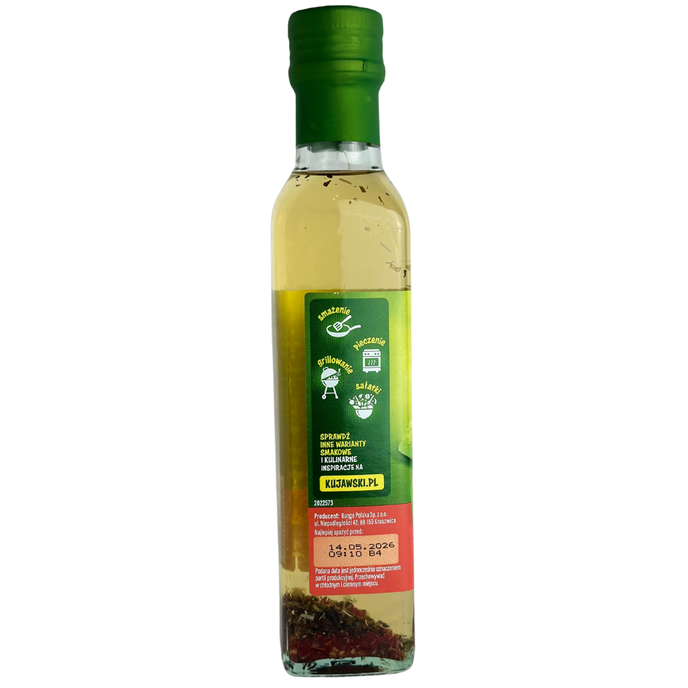 Олія Kujawski з томатами, часником і базиліком надає стравам особливу глибину смаку та освіжаючу нотку. Вона стане чудовим доповненням для салатів, паст, піци або для запікання. Упаковка 250 мл зручна для щоденного використання вдома або на кухні.
