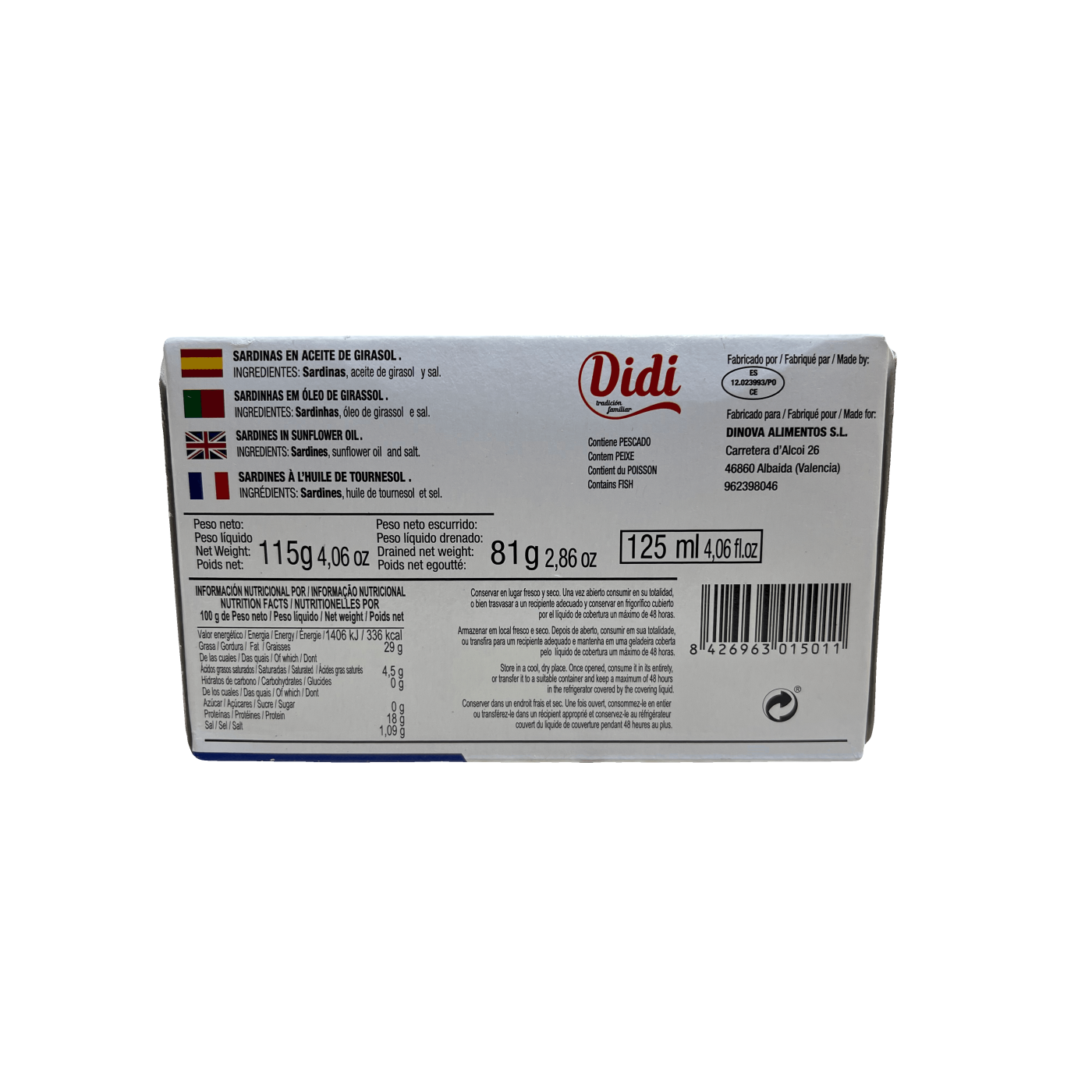 Філе сардини без шкіри і кісток в соняшниковій олії торгової марки Didi завойовує серця любителів морепродуктів як своїм смаком, так і корисними властивостями. Всім відомо, що риба є джерелом Омега-3, і сардина не виняток. Вона стане чудовим перекусом або закускою до столу, досить покласти шматочок на скибочку хліба та апетитний бутерброд готовий.