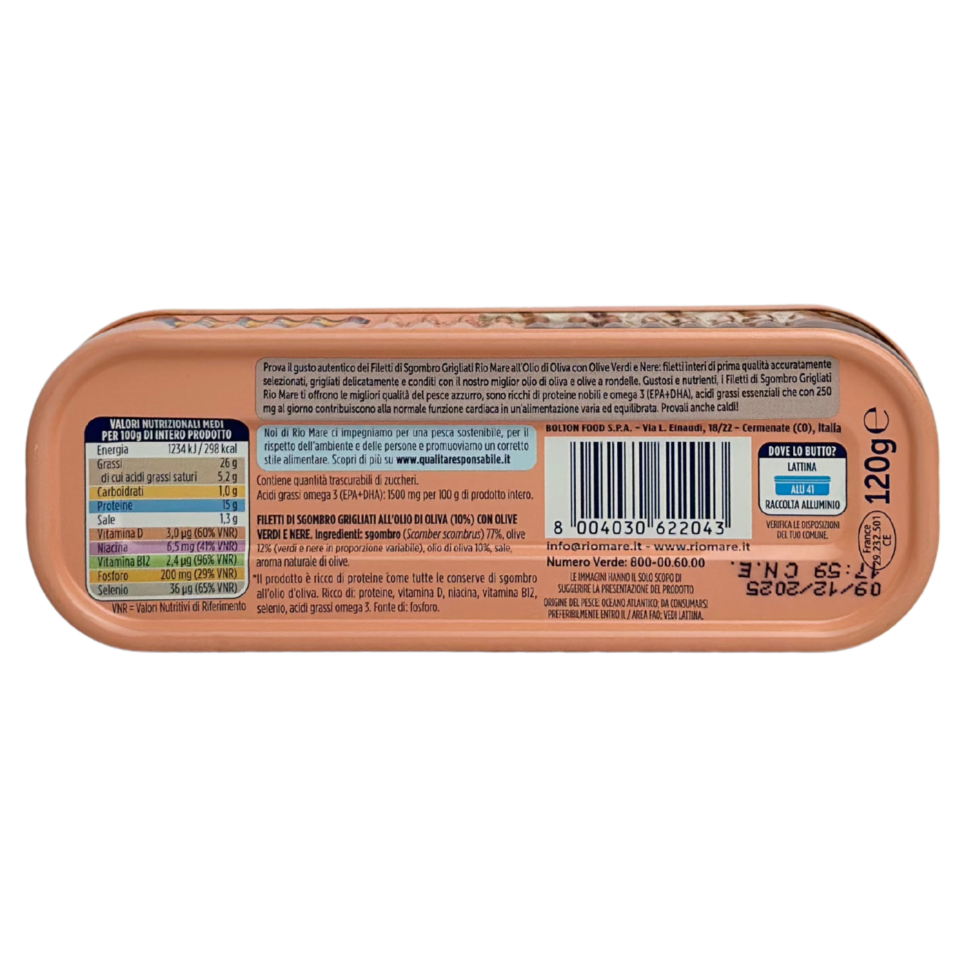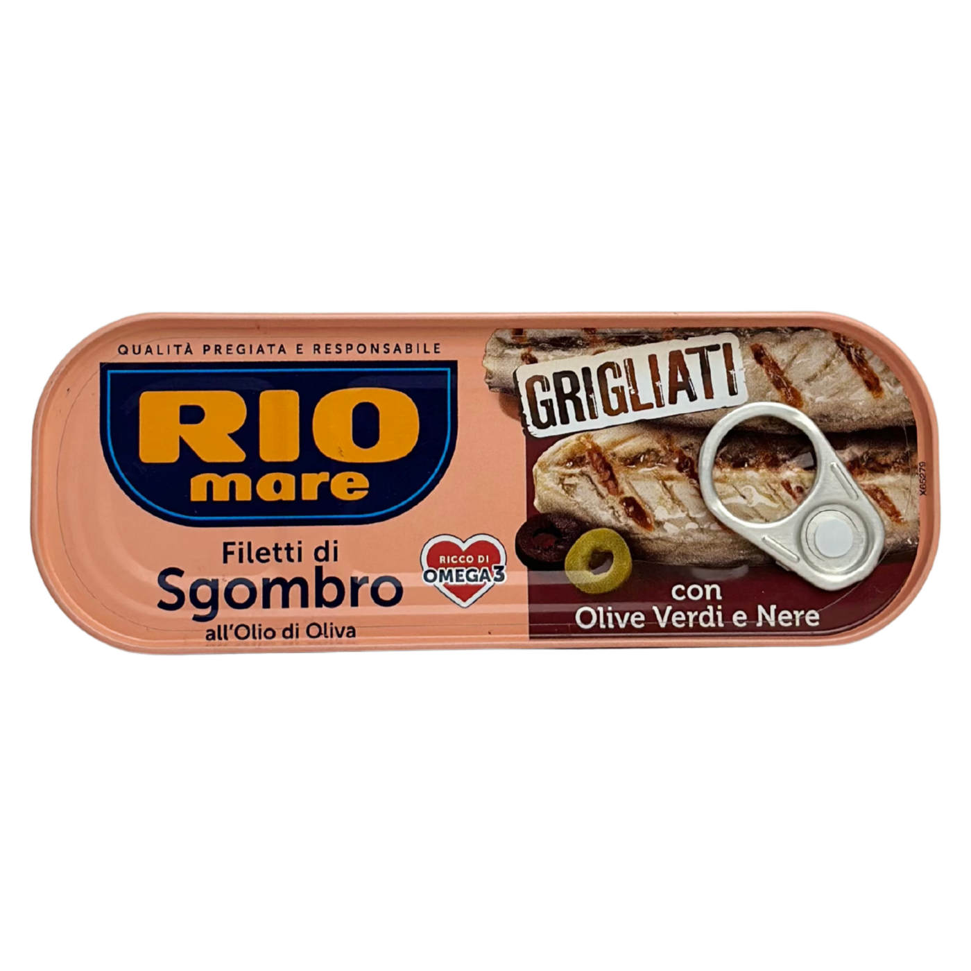 Скумбрія грильована в оливковій олії з зеленими та чорними оливками Rio Mare Filetti di Sgombro all’Olio Verdi e Nere 120g