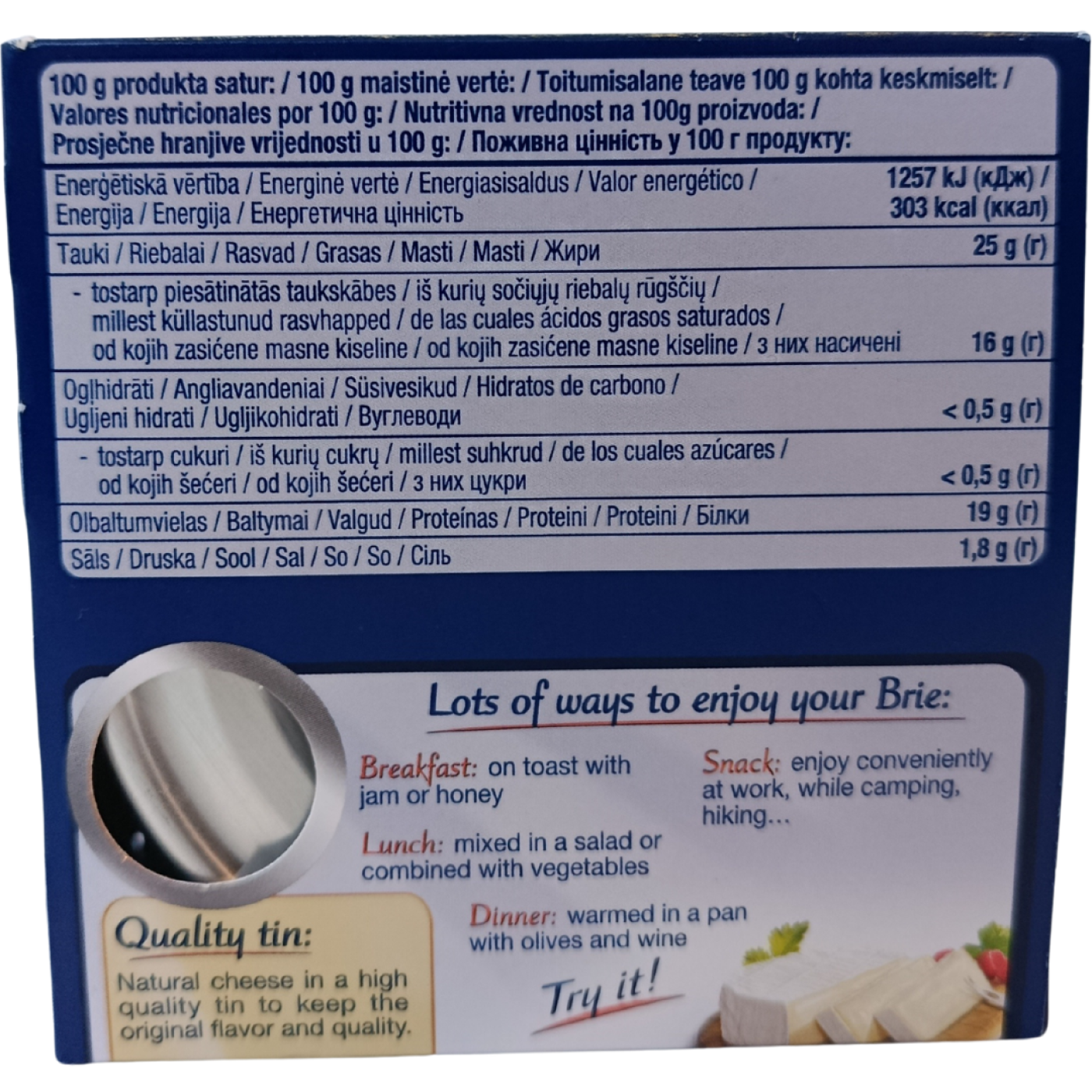 Brie Soft ripened cheese – це сир з надзвичайно м’якою текстурою, виготовлений з коров’ячого молока. Він має тверду бархатисту корочку з білої плісняви, яка немає смаку та «тримає форму». Сам сир має делікатний вершковий смак з ненав’язливою горіховою ноткою, гурмани його обожнюють, оскільки він тане у роті та залишає приємний післясмак.