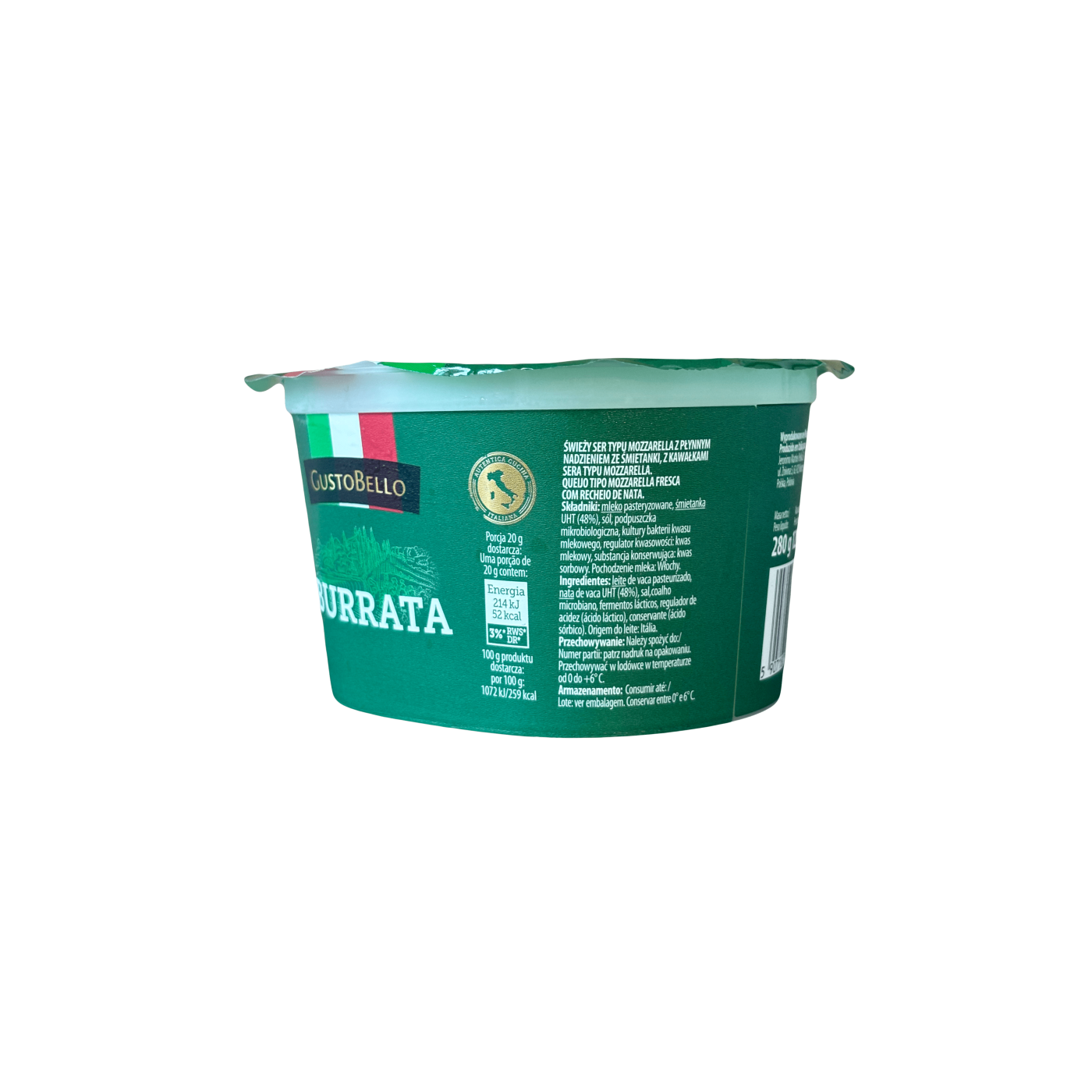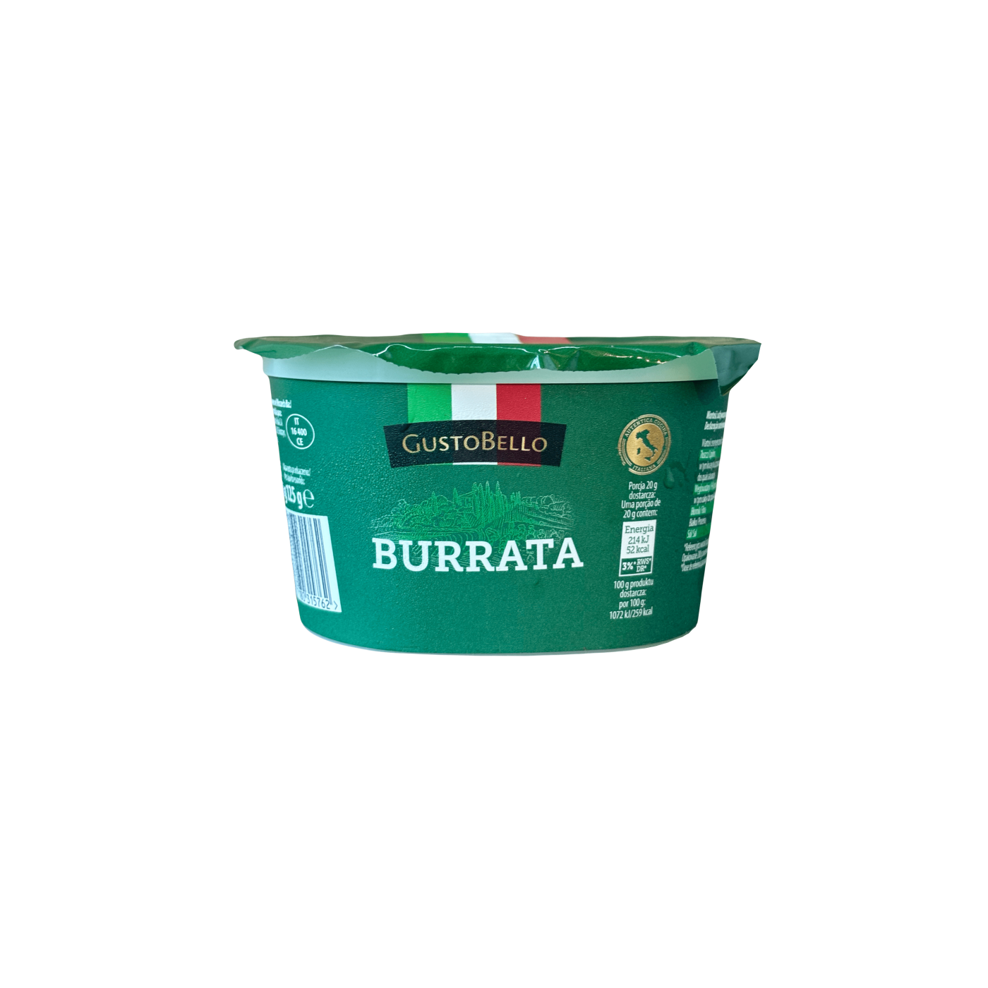 Буррата від виробника Густо Белло- це поєднання моцарелли і суміші вершків і сиру всередині. Має ніжну текстуру, м'який смак з солодкуватим післясмаком та вершковим ароматом. Буррата — дуже універсальний сир, який можна використовувати в багатьох стравах! Він- ідеальне рішення, коли треба швидко приготувати страву для компанії. Її найніжніший смак підходить до будь- яких страв і просто так, з оливковою олією, фокаччею або підсмаженим хлібом, трохи присипаною чорним свіжомеленим перцем.