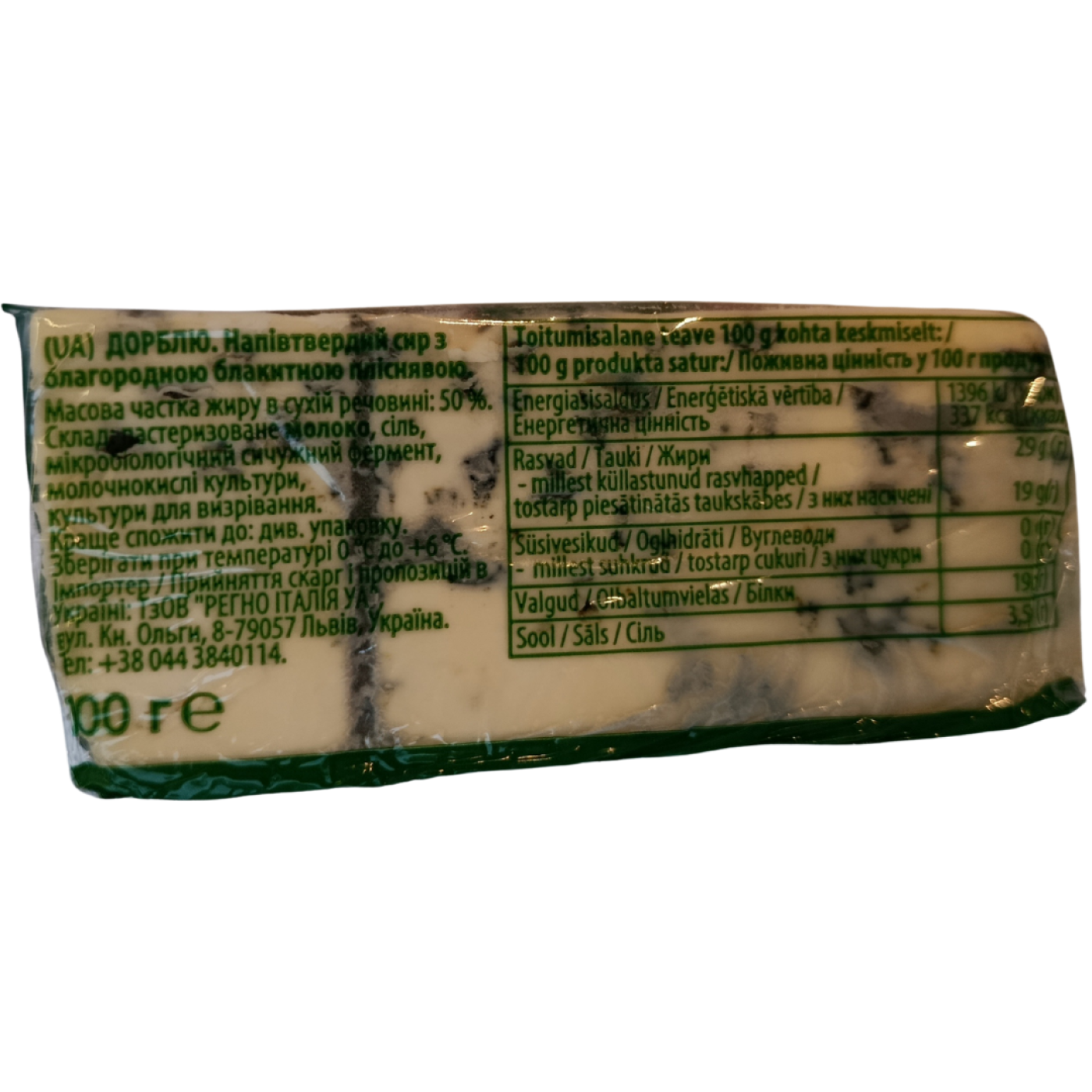 Dorblu Classic від Käserei Champignon поєднує в собі найкращі властивості улюбленого багатьма гурманами блакитного сиру – ніжний смак, кремову консистенцію та вишукану і злегка пікантну нотку, яку дарує блакитна пліснява. Він виготовлений досвідченими спеціалістами з використанням відбірних інгредієнтів, а назва Dorblu перекладається з французької як «Блакитне золото». Дорблю вдало поєднується з салатами та закусками, він тане у роті, залишаючи приємний післясмак.