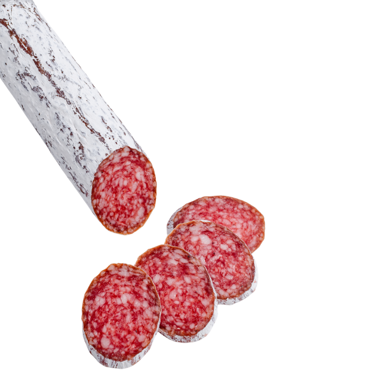 Salami Milano Premio Rasmo - це сиров`ялена ароматна салямі з білою пліснявою на скоринці. Має м'який, солодкуватий смак, містить мінімальну кількість спецій.