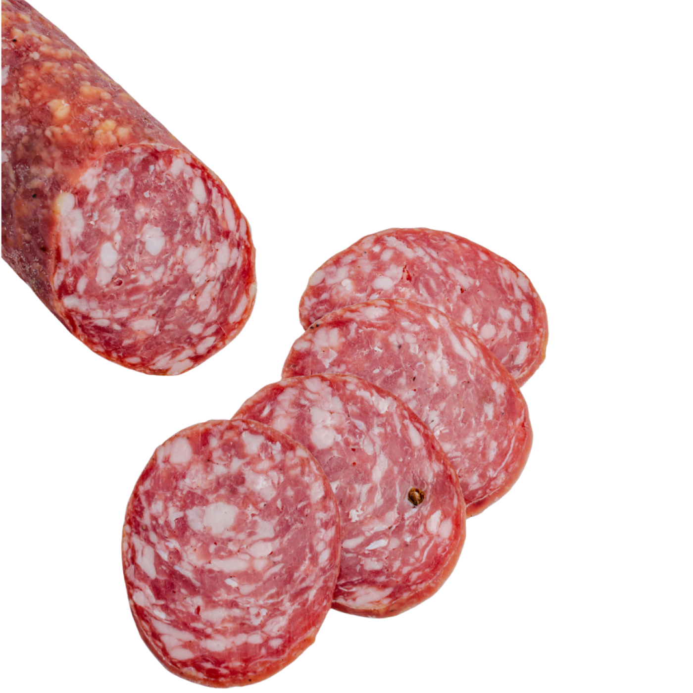 Салямі Napoli- традиційна неаполітанська ковбаса. Виготовляється зі свіжої свинини із вкрапленням сала з додаванням запашного духмяного перцю. Смак солодкуватий з м'ясним ароматом і димними нотками. Салямі Napoli можна додавати на сніданок, обід або вечерю, а також використовувати як інгредієнт для різних страв, включаючи сендвічі, піцу, пасту та салати. Не містить глютену та лактози!