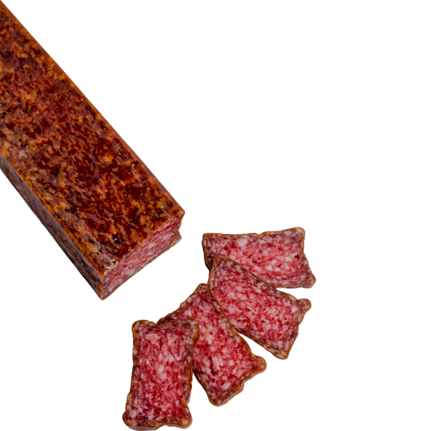 Салямі Vijofel Lovecka – ніжна та ароматна ковбаса, виготовлена зі свинини високої якості за оригінальною рецептурою. Вкраплення білого сала надає їй м’якої текстури та делікатного смаку, а традиційне сирокопчення підкреслює насичений аромат і легку пікантність. Ідеальна для нарізки та на бутерброди.