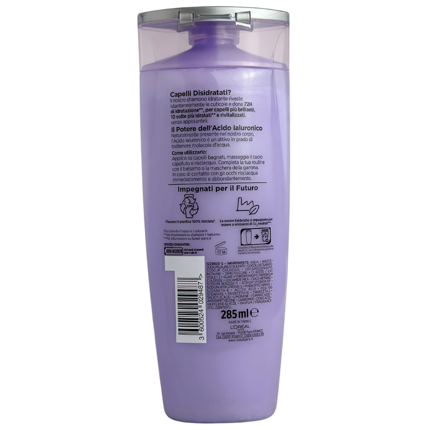 Шампунь миттєво покриває кутикули та забезпечує зволоження до 72 годин, завдяки гіалуроновій кислоті, яка є активним інгрідієнтом, здатним утримувати молекули води.
