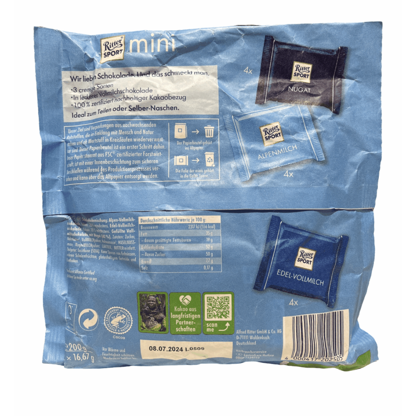 Мікс міні-шоколаду Ріттер Спорт Blaue Tute Ritter Sport Mini 12шт 200g