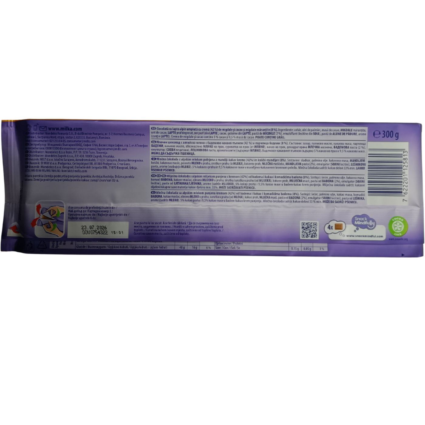 Відкрийте для себе вишукане поєднання класичної ніжності та розкішної начинки з гігантською плиткою Milka Mmmax Almond Truffle! Цей шоколад вагою 300 грамів створений для справжніх гурманів, які цінують делікатний смак мигдалю та кремову текстуру трюфеля.