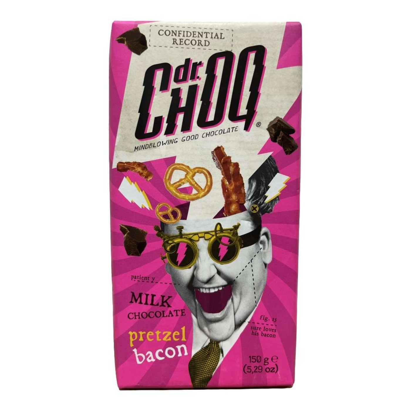 Молочний шоколад з кренделями та беконом Pretzel Bacon Dr. Choo 150g - Нереальне поєднання і водночас смачна комбінація. Об'єднує ніжний смак молока і солодкуватість шоколаду з виразною солоністю кренделів та ароматом бекону.