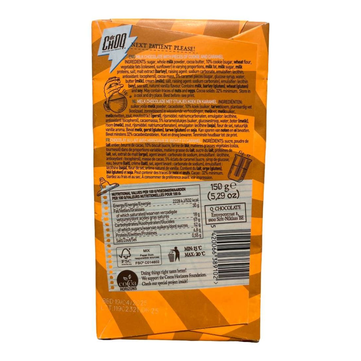 Молочний шоколад з печивом і карамеллю Cookie caramel Dr. Choo 150g - Смачний бельгійський шоколад поєднує в собі смаки хрусткого печива та смачної карамелі, яка тане в роті.