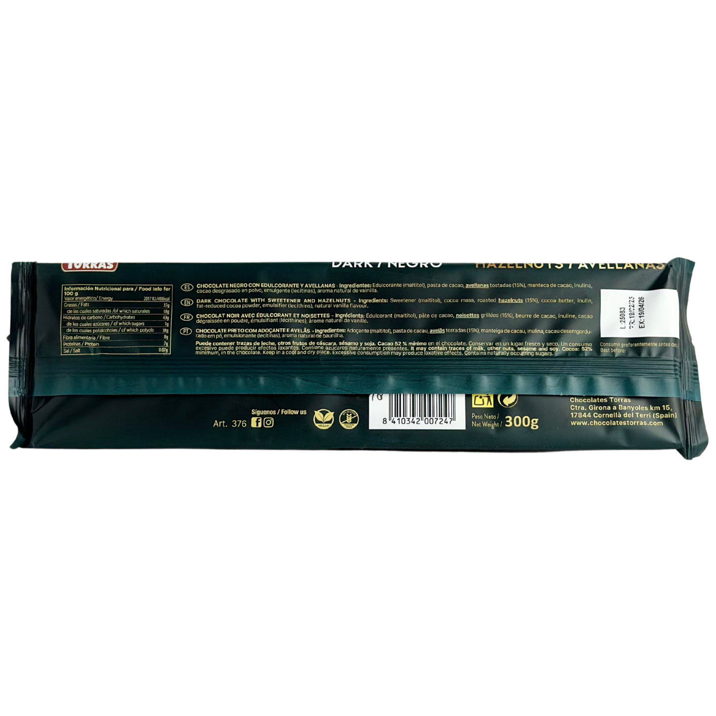 Насолода без зайвого — темний шоколад Torras з хрустким фундуком створений для тих, хто хоче отримати максимум смаку без доданого цукру. Виготовлений з якісного какао, цей шоколад має насичений, глибокий смак і доповнений цільними горішками фундука, що робить кожен шматочок особливим.