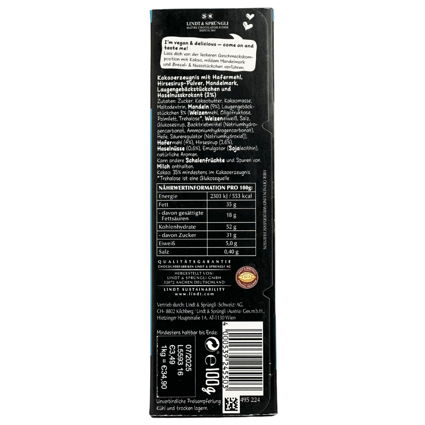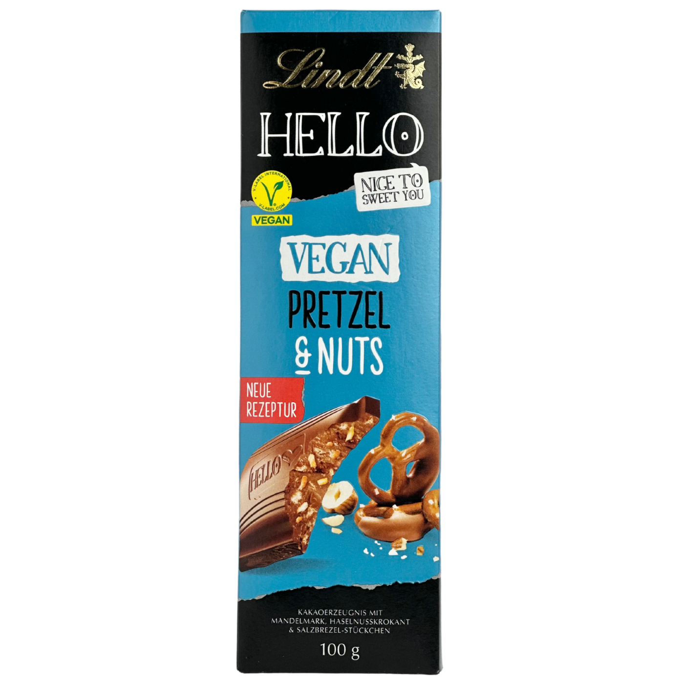 Шоколад молочний з фундуком і брезелами Hello Lindt 100g Vegan Pretzel&nuts - це дуже смачний шоколад який просто тане у роті. Дозвольте спокусити себе вишуканою смаковою композицією з ніжного какао, м'якою м'якоттю мигдалю, та шматочками кренделів та горіхів. Такий шоколад буде смакувати ще більше до чаю чи капучіно. Смакуйте та насолоджуйтеся.