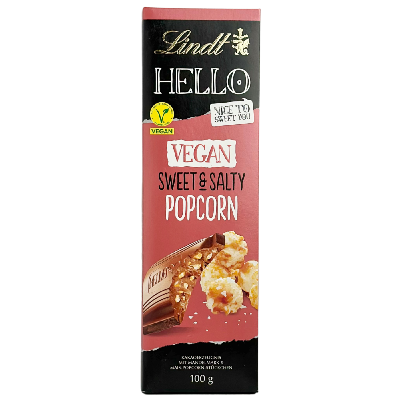 Шоколад молочний з соленим і солодким попкорном Hello Lindt 100g vegan sweet&salty popcorn