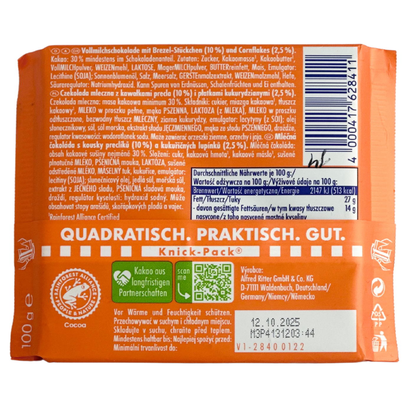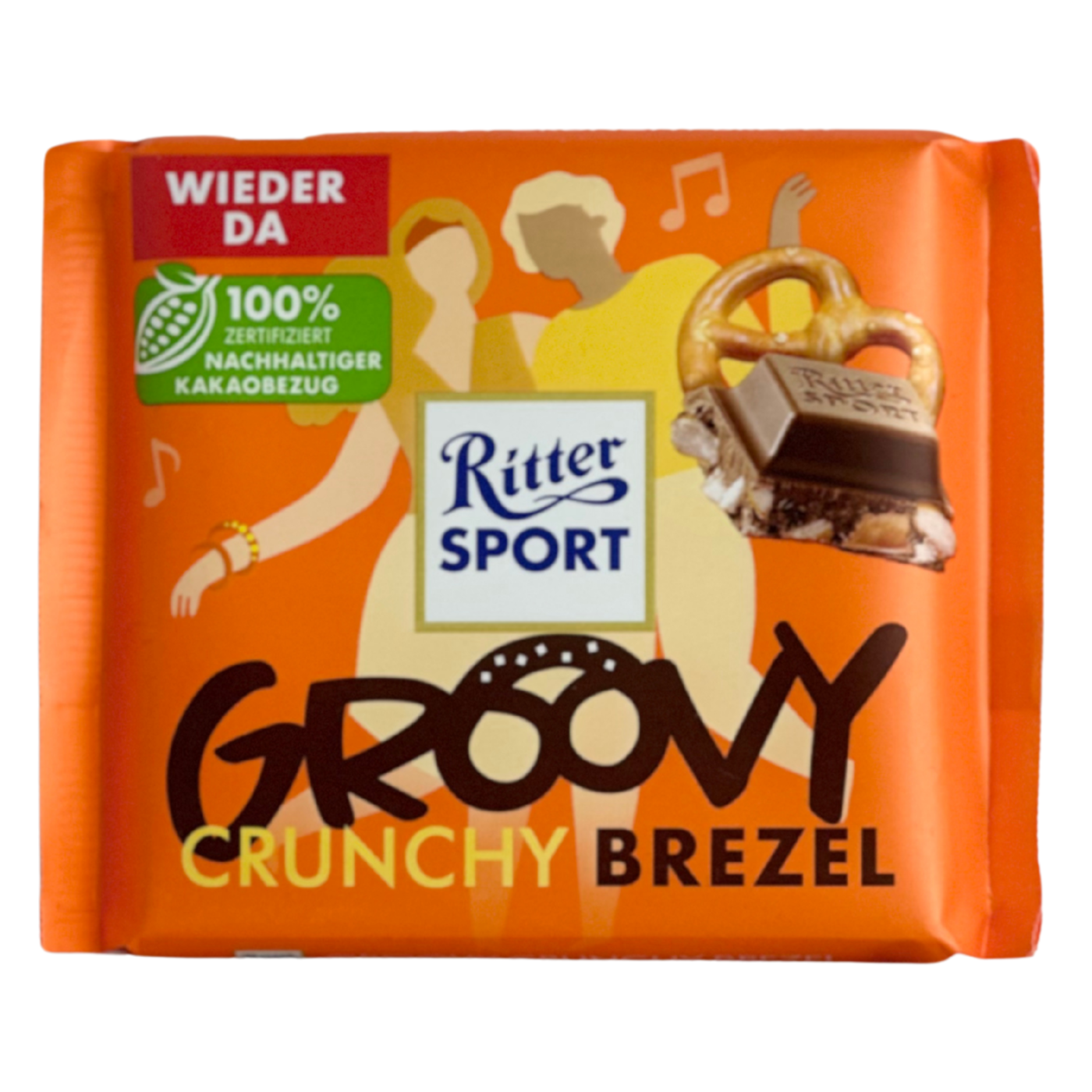 Шоколад Ritter Sport Groovy Crunchy Brezel 100 г — це молочний шоколад преміум-класу від німецького бренду Ritter Sport, який поєднує в собі хрусткі шматочки кренделя та кукурудзяні пластівці. Ця унікальна комбінація створює ідеальний баланс між солодким та солоним смаками, даруючи справжнє задоволення від кожного шматочка.