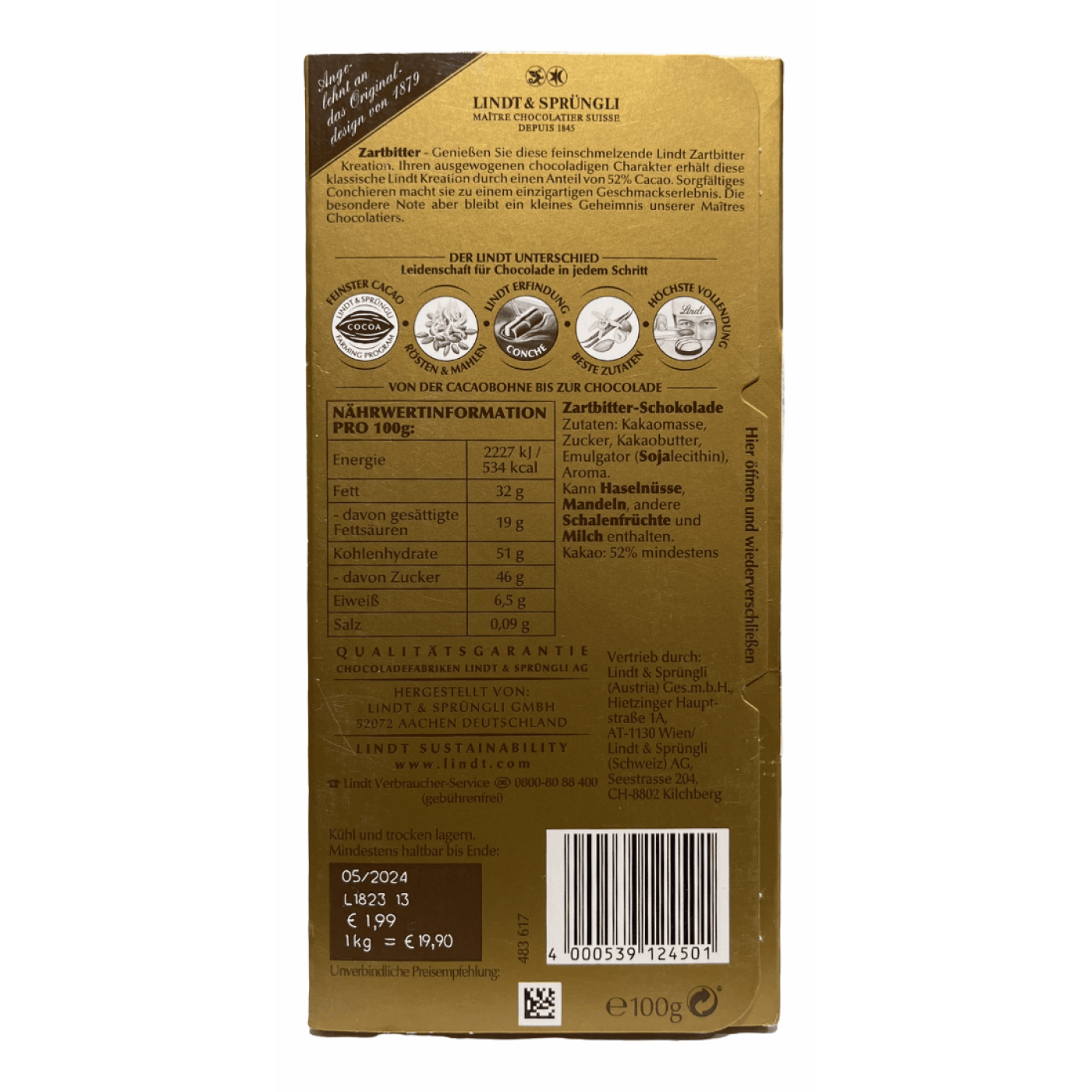 Шоколад темний Lindt Zartbitter 100g