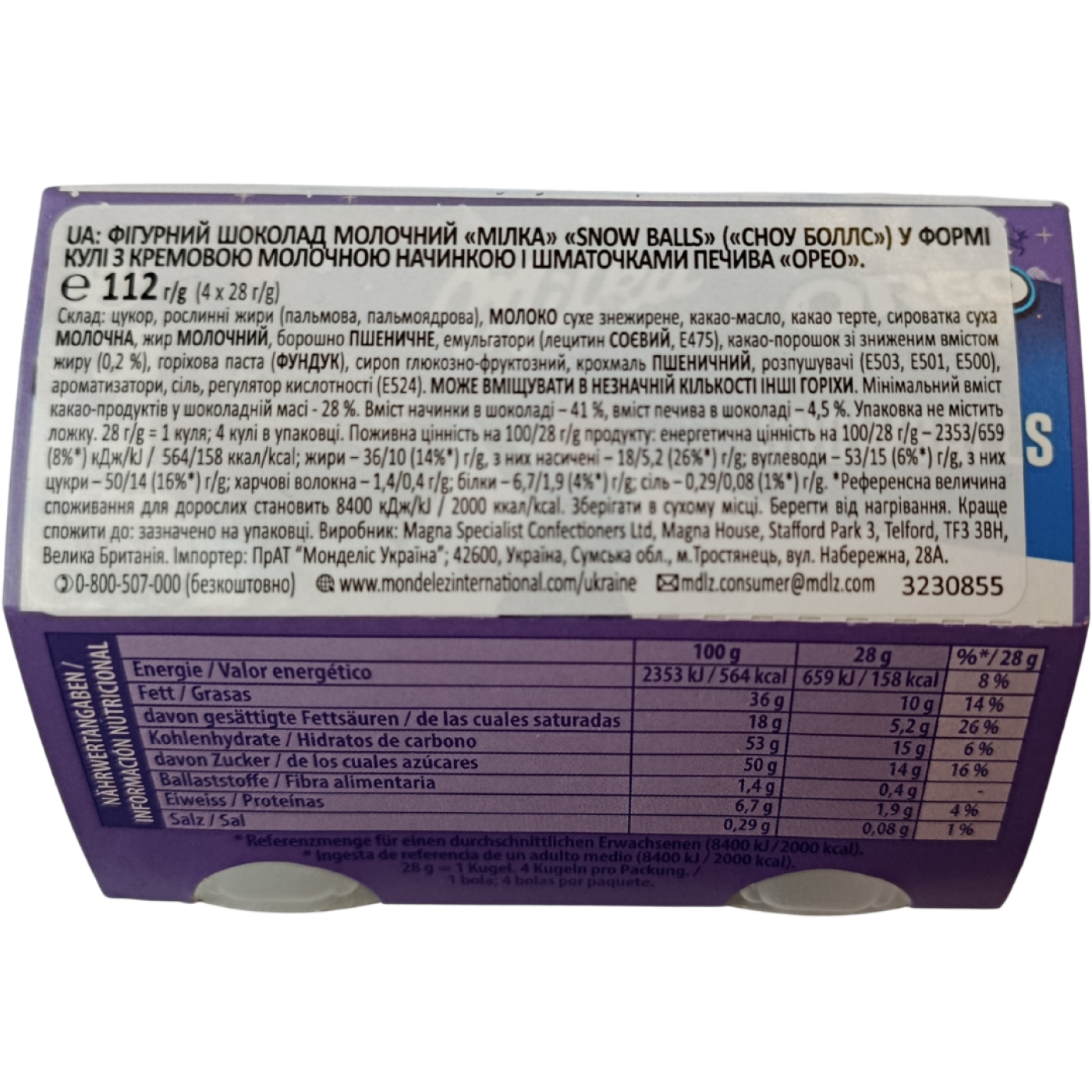 Snow Balls Milka Oreo – справжній бестселер, від якого неможливо відірватись. Це шоколадні яйця від Мілка, всередині яких вершково-ванільний крем зі шматочками популярного печива Орео. В комплекті 4 яйця та 2 ложечки, якими зручно одразу їсти. Неймовірна насолода від смаку точно буде забезпечена.