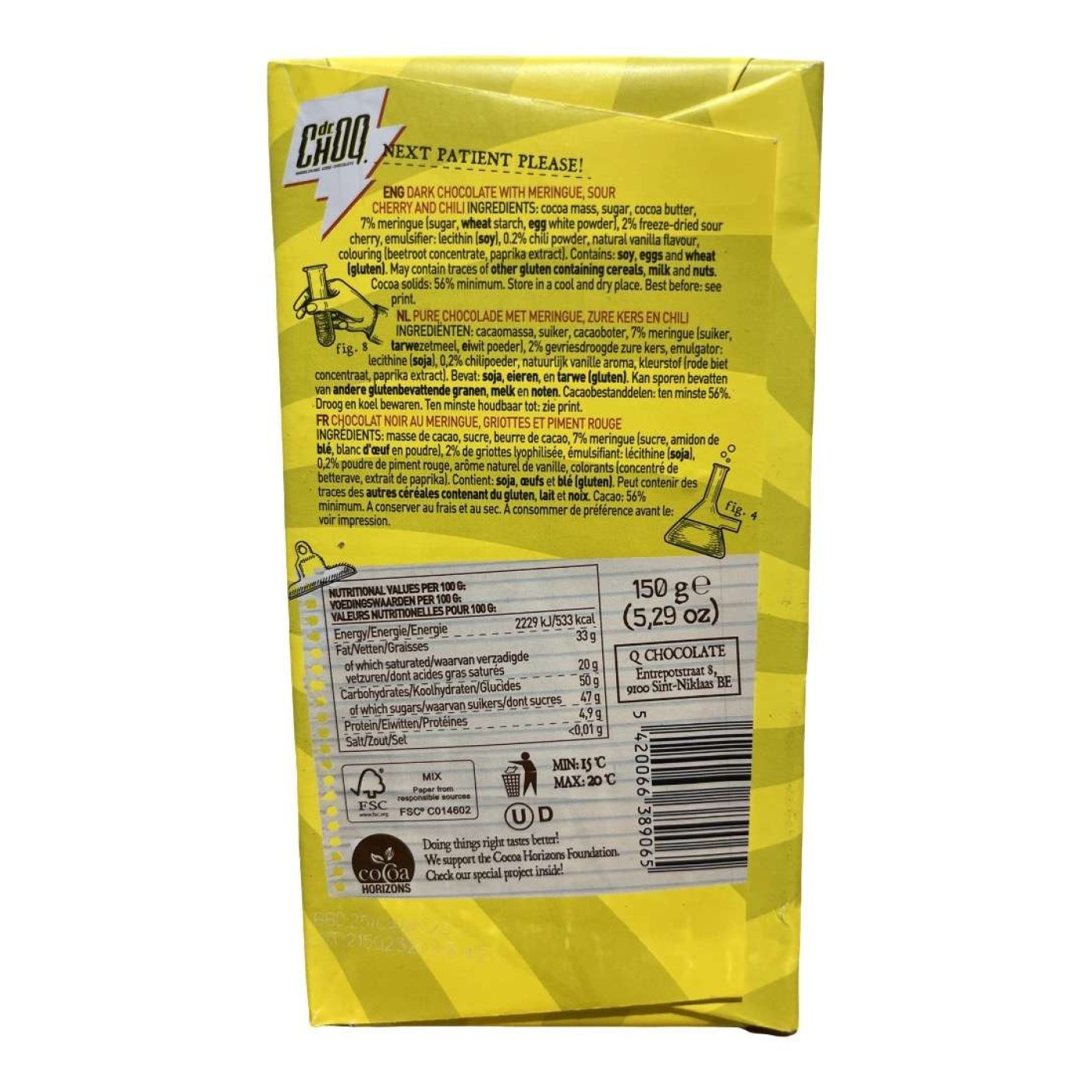 Темний шоколад з бізе, вишнею та чилі Cherry, meringue, chili Dr. Choo 150g - Нова лінійка неймовірно смачного бельгійського шоколаду. Шоколадка розкриває несподіваний збір смаків солодкого, кислого та пікантного. Солодкі нотки вишень та пікантність чилі, все це робить цей шоколад справді унікальним.