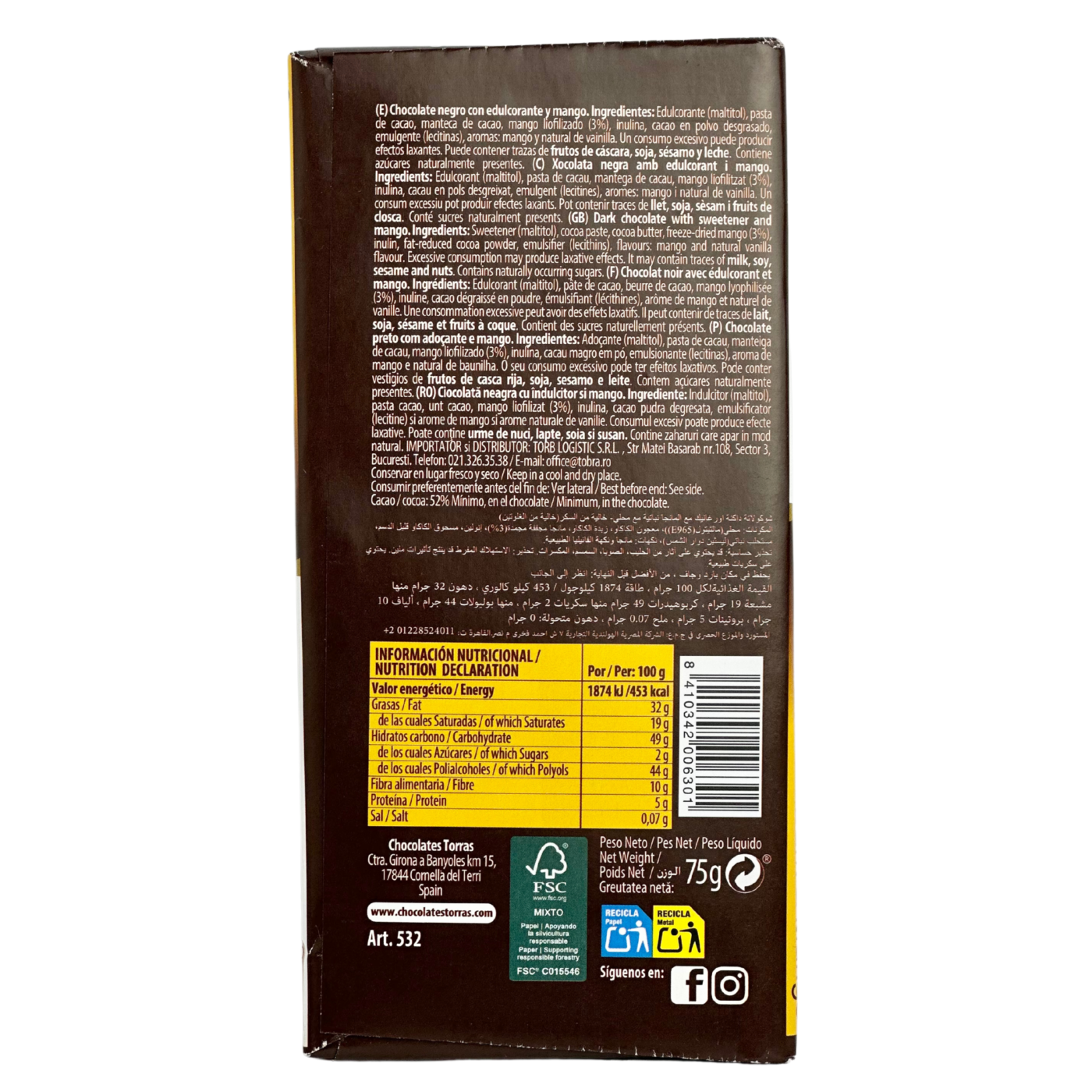 Не можете відмовитись від солодкого та хочете обмежити кількість цукру? Torras дарує можливість споживати солодке без шкоди, виготовляючи продукти без цукру з особливими смаками. Dark and mango має насичений смак гіркого шоколаду з додаванням манго, разом вони створюють особливий дует, який неодмінно прийдеться до смаку.