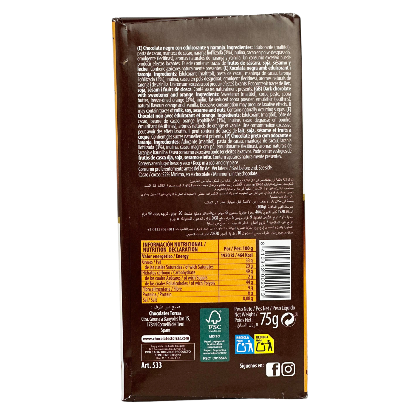 Шоколад темний без цукру з апельсином Torras Dark & Orange 75g