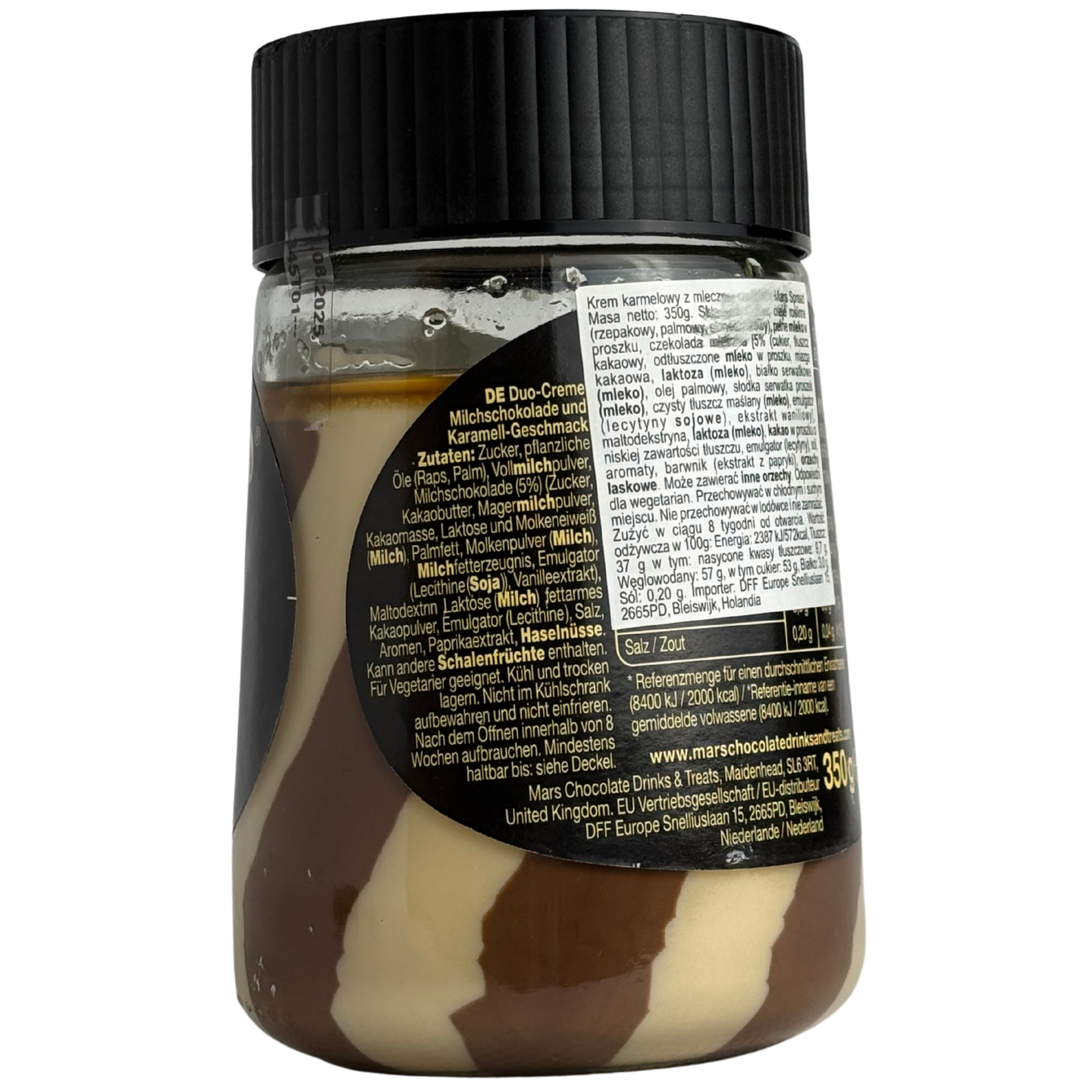 Карамельно-шоколадна паста Марс. Виготовлена з натурального молочного шоколаду, карамелі та горіхів. Має яскраво виражений смак улюбленого батончика Mars.   Густа за текстурою, але водночас дуже ніжна. Справжня насолода для любителів солодкого. Чудово підійде для намазування на тости, вафлі, млинці, або як додаток до фруктів та морозива.