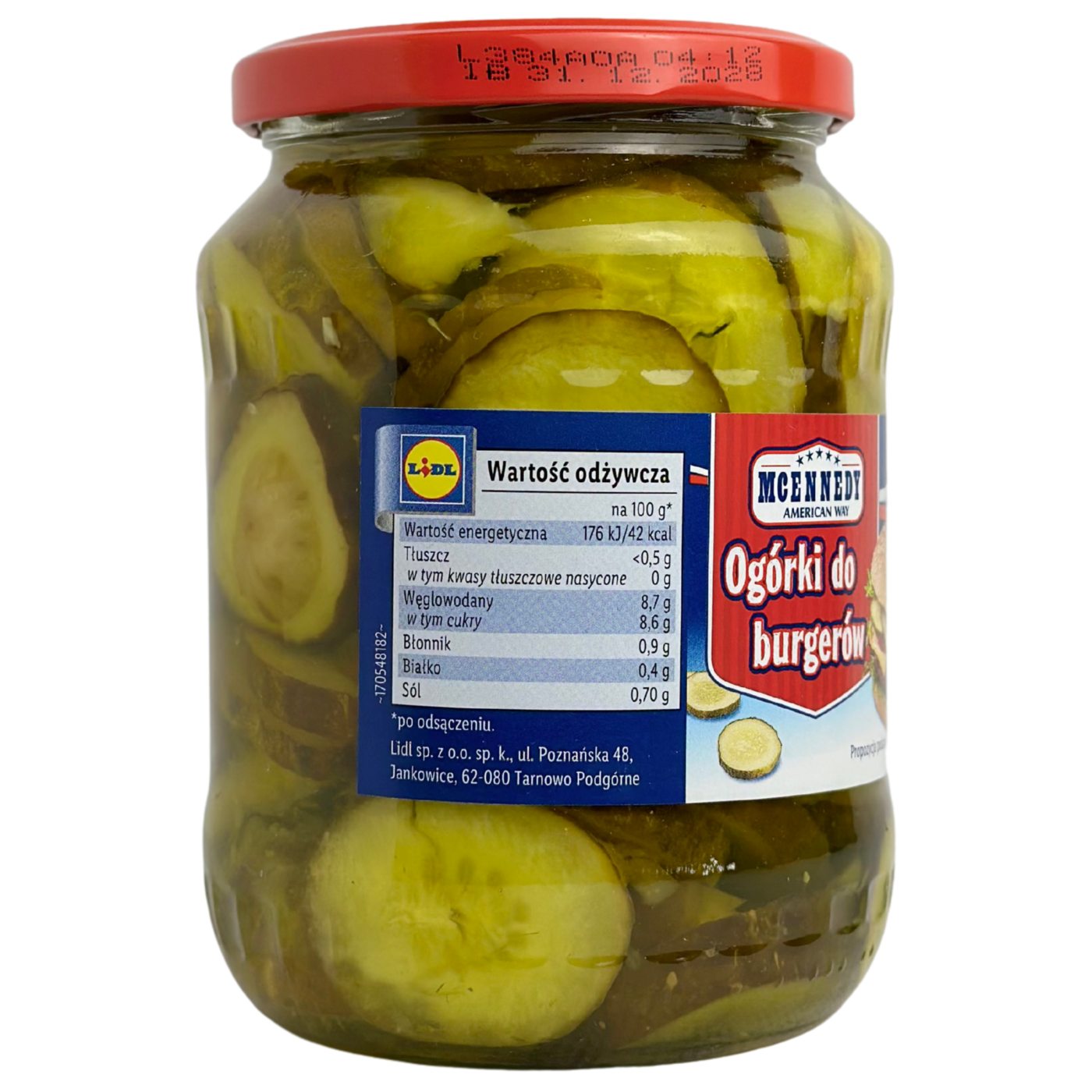 Скибочки маринованого корнішона Mcennedy 670 г - це хрусткі та смачні мариновані корнішони, нарізані скибочками для зручності використання. Вони мають приємну кисло-солодку маринадну нотку, що робить їх ідеальними для додавання до салатів, бутербродів або як закуску. Корнішони Mcennedy чудово поєднуються з м'ясними стравами, сирами або як самостійна закуска.