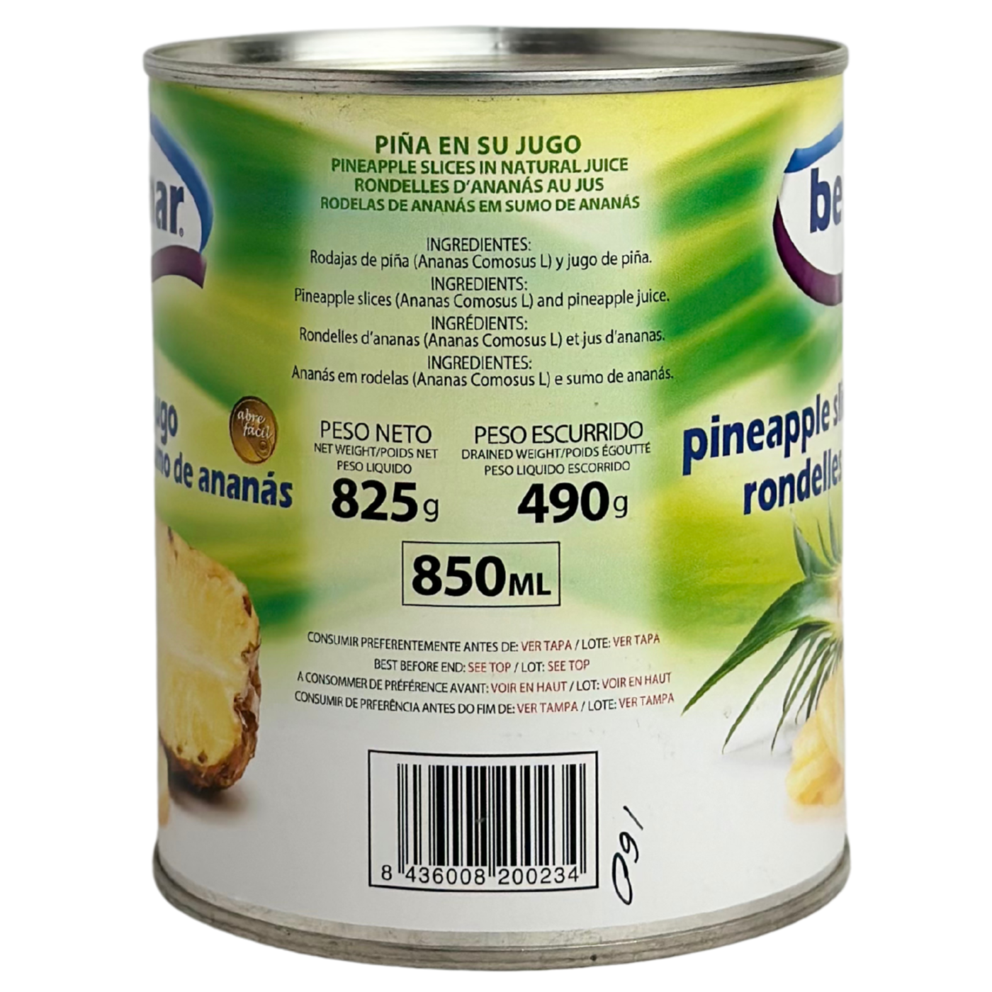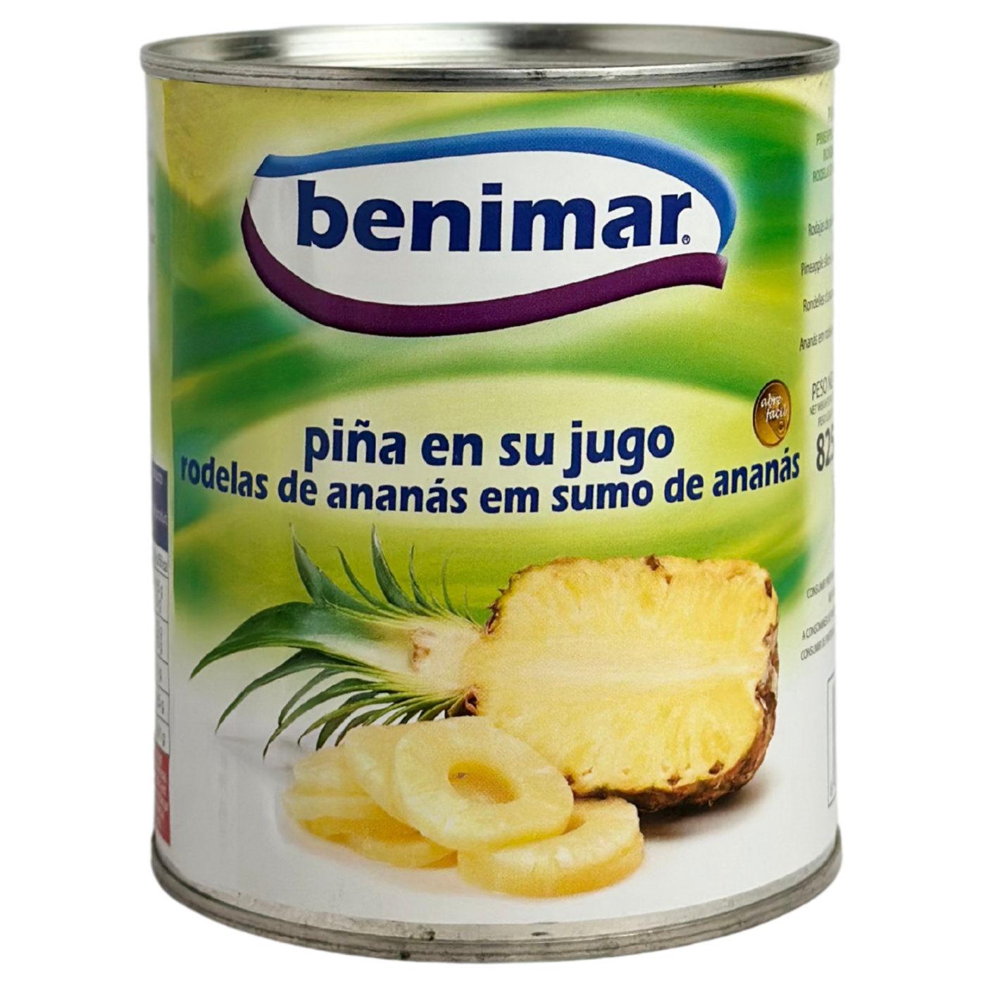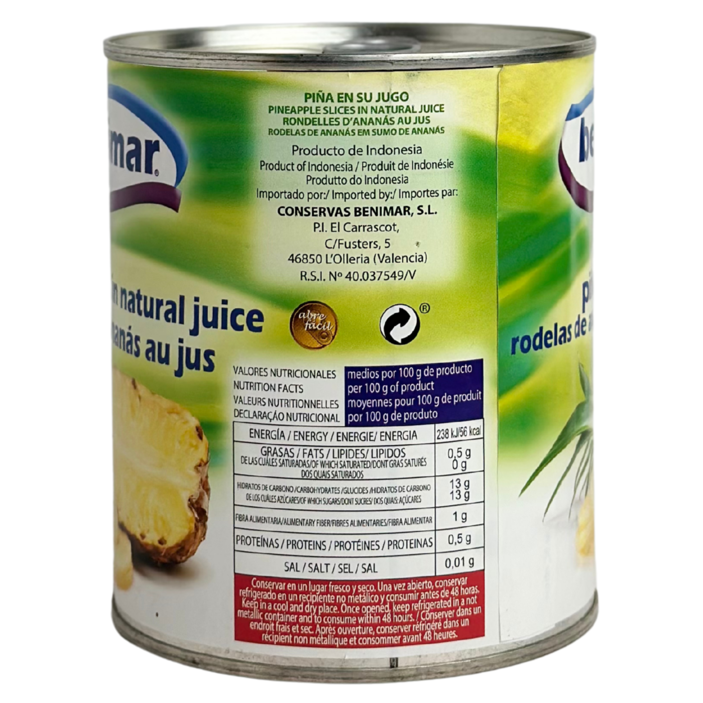 Консервовані ананаси кільцями від Іспанського виробника Бенімар. Консервуються без додавання цукру. Збагачені великою кількістю клітковини, вітамінами, добре впливають на травлення здійснюючи антиокстидантну дію для організму. Чудово втамовують голод та ще й низькокалорійні. Соковиті ананаси чудово підійдуть до закусок, піци, заправки салатів, тортів чи як самостійна закуска.