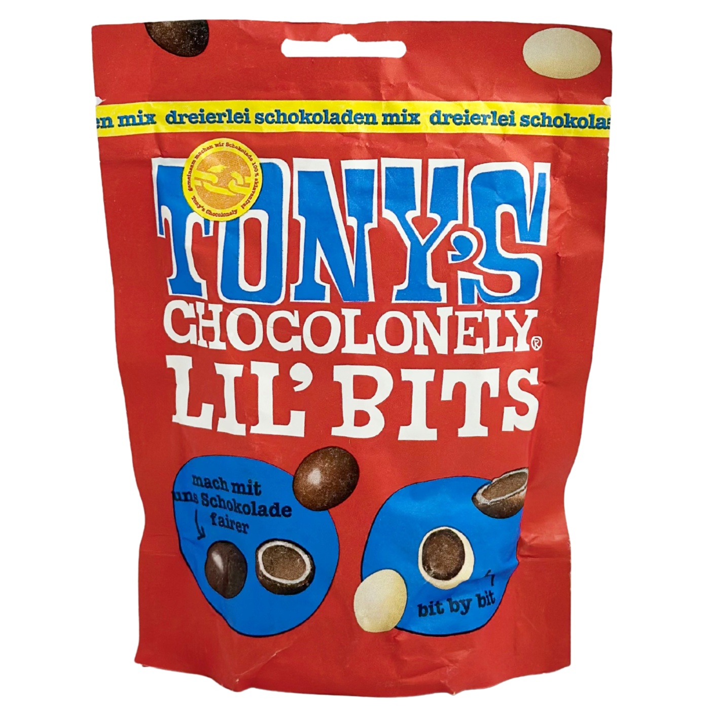 Tony’s Chocolonely Lil’ Bits — яскраві маленькі кульки щастя у різних шоколадних оболонках. Усередині — ніжна начинка з хрусткою текстурою, а зовні — шар молочного, темного чи білого шоколаду від Tony’s Chocolonely, створеного з турботою про людей та планету. Кожна драже — це поєднання насиченого смаку, приємної солодкості та легкого хрускоту, що піднімає настрій з першого шматочка. Ідеально для перекусу, подорожей або моментів, коли хочеться чогось маленького, але особливого.