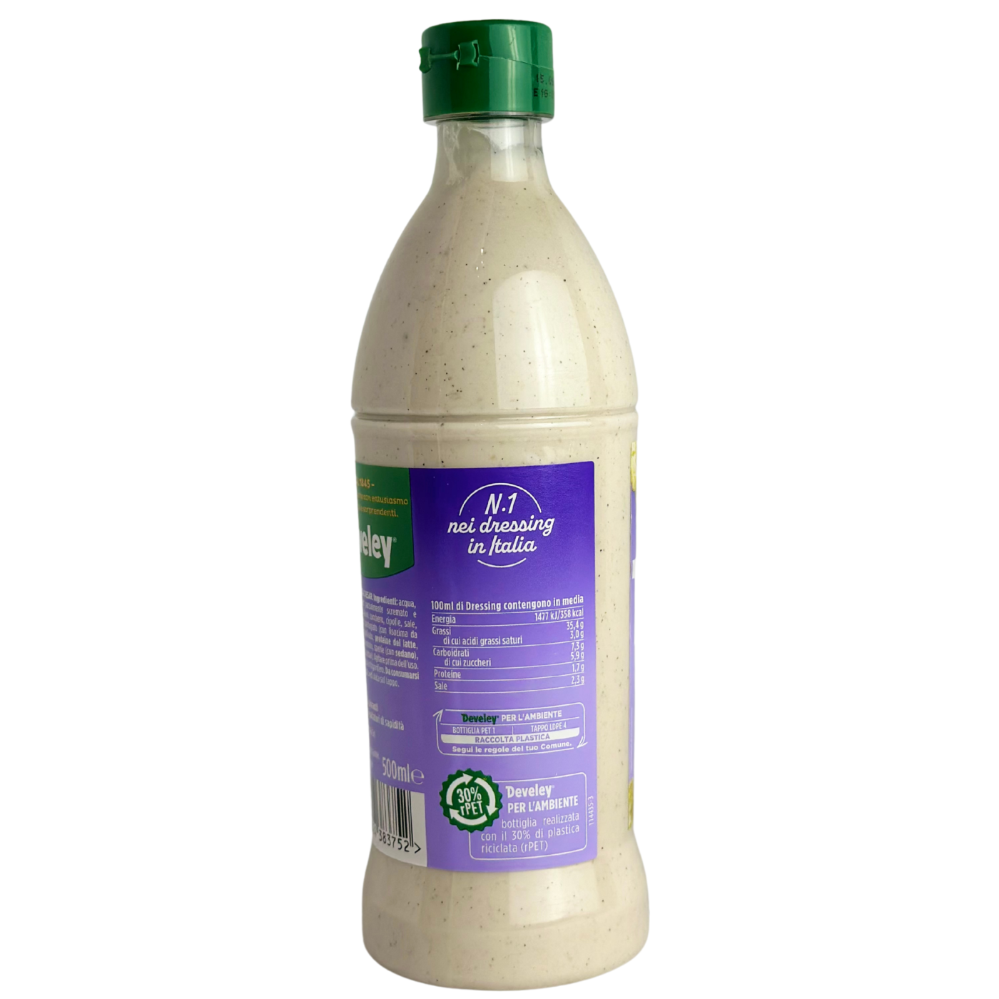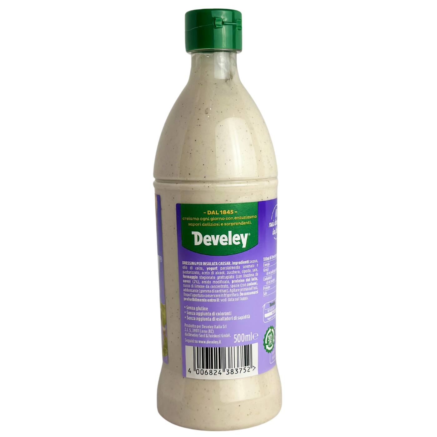 Ніжний соус на основі йогурту доповнюють спеції, твердий сир та лимонний сік, що робить його ідеальною заміною майонезу. Він має м’який пікантний смак та ніжну приємну текстуру, підкреслюючи смак страв. Соус Девелей Цезар підійде для овочевих та м’ясних салатів, також він ідеально доповнить гарячі страви з картоплі. Одна з вагомих особливостей соусу-дресінгу Develey – низька калорійність, що робить його невід’ємним продуктом для всіх, хто слідкує за фігурою та бажає додати стравам вишуканого смаку.