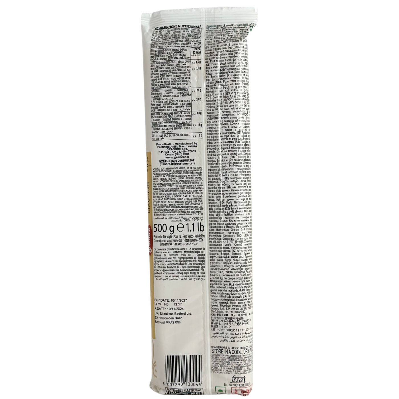Спагетті Linguine від Granoro in Primo - це класичні італійські макарони зі стрункою формою, трохи ширші за звичайні спагетті. Вони виготовлені з високоякісного пшеничного борошна і відрізняються своєю гладкою текстурою та відмінним смаком. Ці макарони ідеально підходять для приготування різних страв - від класичних паст до болоньєзе до більш вишуканих страв з морепродуктів, соусів або овочів. Їх можна поєднувати з різноманітними інгредієнтами для створення унікальних і смачних комбінацій.