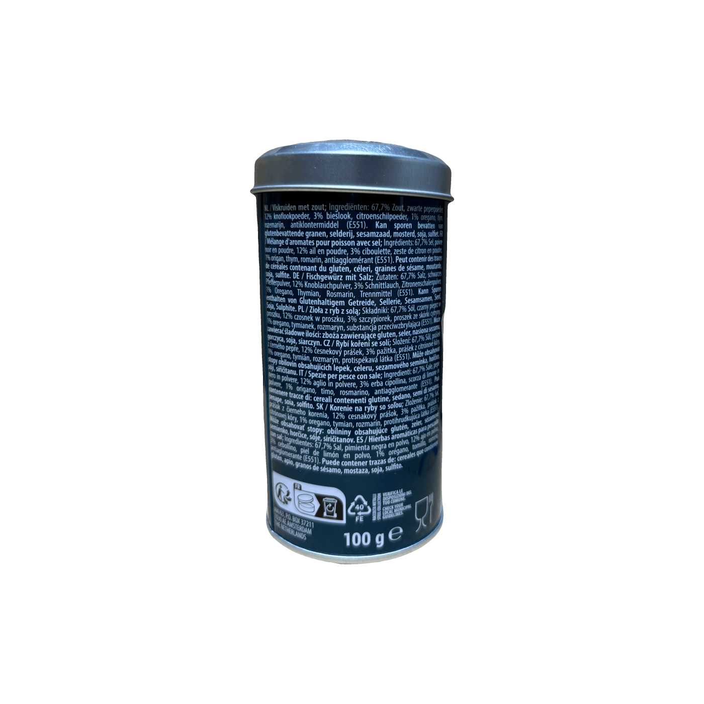 Приправа до риби, в склад якої входить орегано, часник, морська сільчорний перець, лимонна цедра, зелена цибуля та розмарин. Чудова суміш спецій, яка підкреслює смак риби та страв з неї, надає неймовірний аромат та робить страву апетитнішою. Вага приправи 100 г, міститься у металевій банці, що зручно брати з собою в дорогу чи на природу. Спосвб маринування вказаний на звороті, він займає всього лиш 10-15 хв.