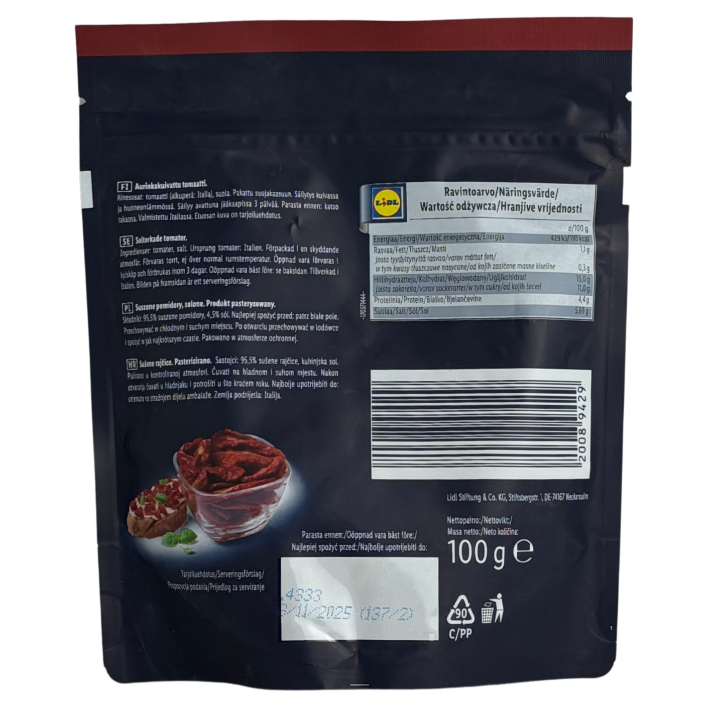 Ці сушені томати неймовірно ніжні та м'які. Не містять олії. Упаковка має зручну зіп-застібку, тому після відкиття можна не всі одразу використати, а тримати решту в холодильнику. В'ялені томати - це чудове доповнення до ваших як святковиз, так і повсякденних страв. Ідеально використовувати для піци, пасти, брускет, салатів та запіканок.