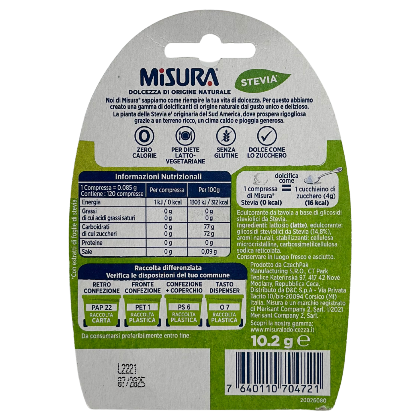 Стевія в таблетках Stevia Misura 120 табл - Компактний і зручний формат цукрозамінника, який підходить як для домашнього використання,так і для застосування за межами особистої кухні. Витрата такого цукрозамінника дуже економна, однієї упаковки вистачить на довго. Підходить для людей з діабетом.