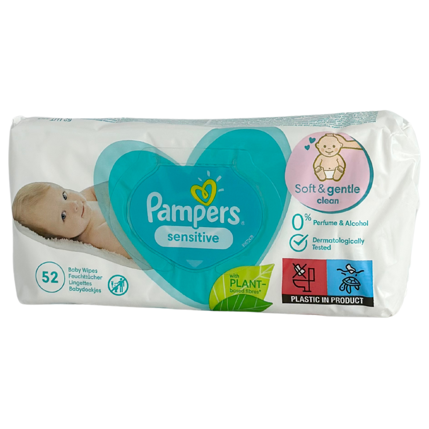 Pampers sensitive – вологі серветки для ніжної та чутливої шкіри малюків, схильної до подразнення. Вони забезпечують чистоту та догляд, адже м’яко очищають, залишаючи приємні відчуття. В складі відсутні компоненти, які можуть викликати алергію, в тому числі спирт та ароматизатори. Серветки підтримують нейтральний рівень pH.