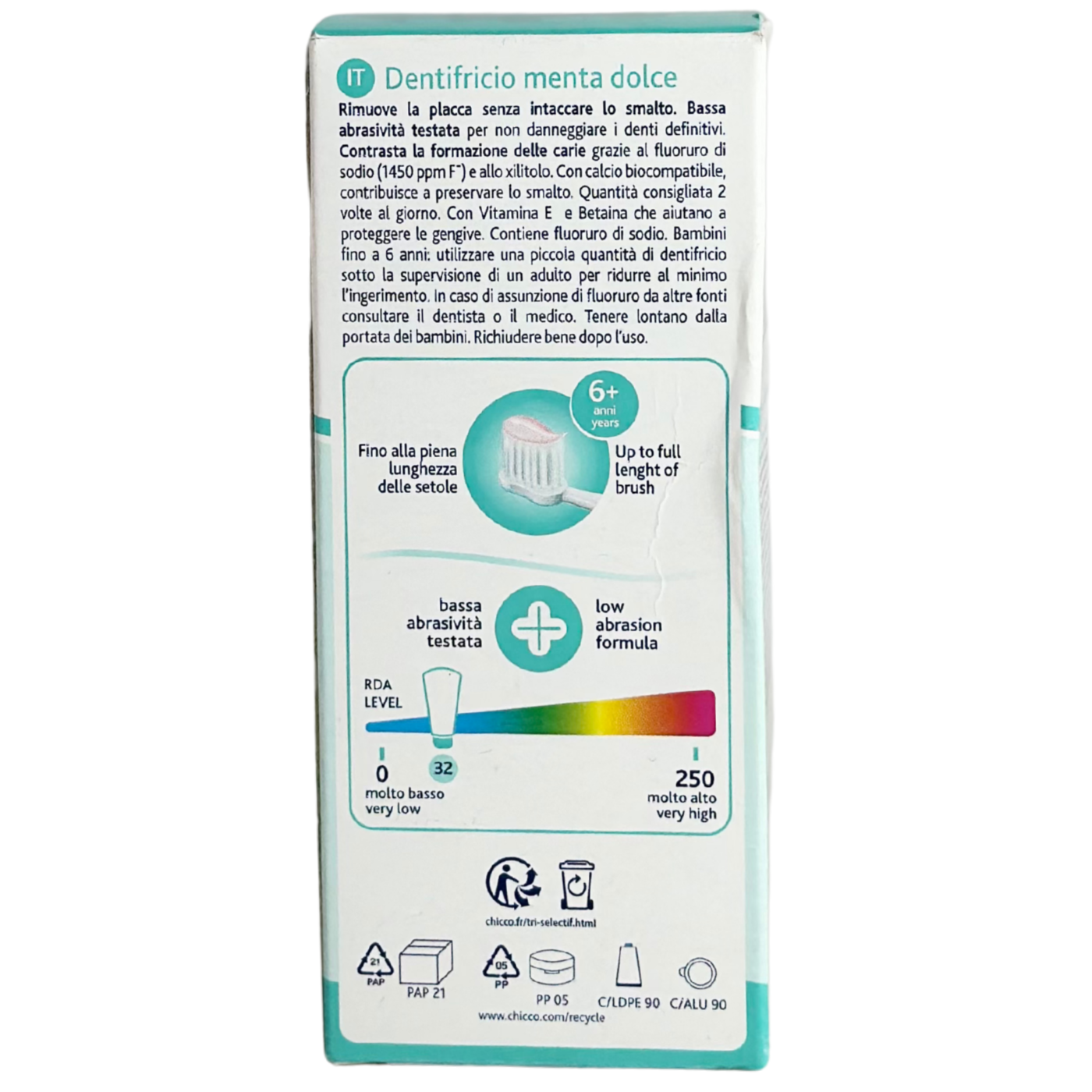 Зубна паста м'яка м'ята Toothpaste Menta dolce mild mint 6+ anni years Chicco 50 ml