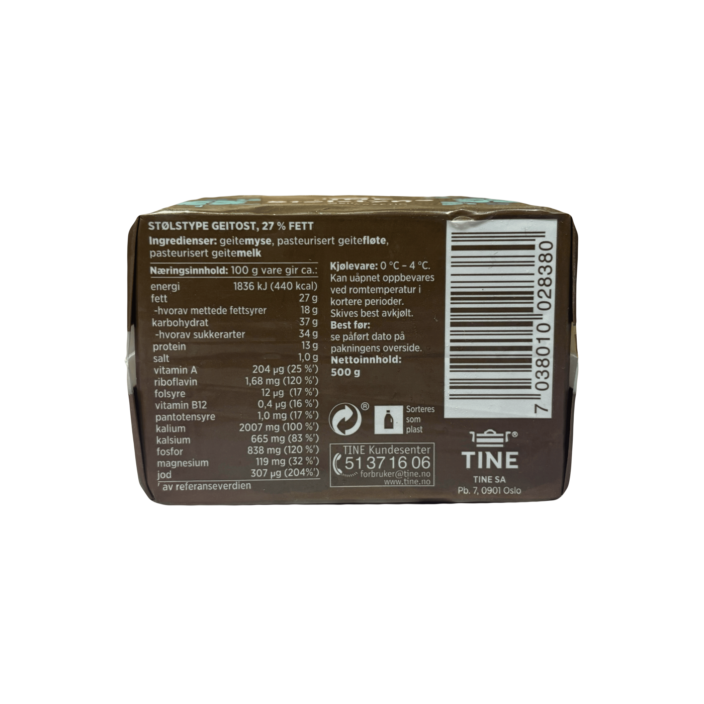 Козячий сир Tine Stolstype- це традиційний норвезький сир темно- коричневого кольору, терпкий з чітким відтінком козячого молока. Виготовлений із козячого молока, сироватки та вершків козячих пастеризованих. Жирність- 27%. Дозвольте собі насолодитися насиченим смаком цього сиру! Його можна нарізати на дрібні шматки, або невеликими скибочками, натерти на терці, щоб додати пікантності стравам.