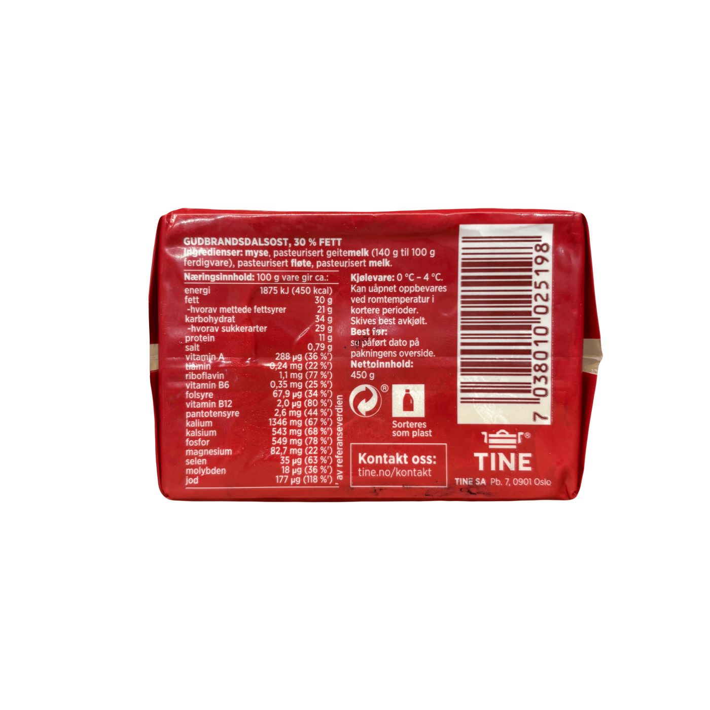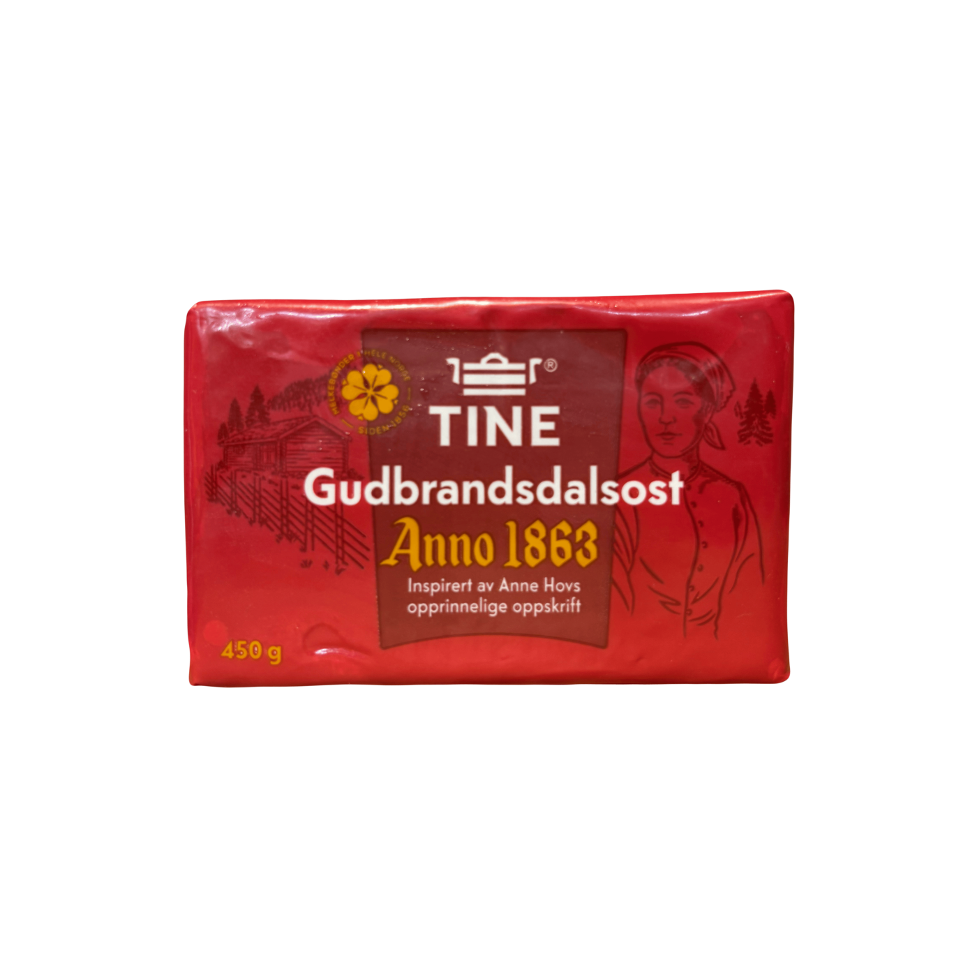 Gudbrandsdalsost Tine Anno 1863— традиційний норвезький сир, який часто виробляє Tine, відома норвезька молочна компанія. Цей сир має багату історію, починаючи приблизно з 1863 року. Зазвичай його виготовляють із коров’ячого молока та характеризуються солодким, карамельним смаком і гладкою текстурою. Сир часто використовується в кулінарії і дуже смачний, якщо подавати його на хлібі або крекерах. Його унікальний смак пояснюється особливими методами виробництва та використанням натуральних інгредієнтів, що робить його улюбленою частиною норвезької кулінарної спадщини.