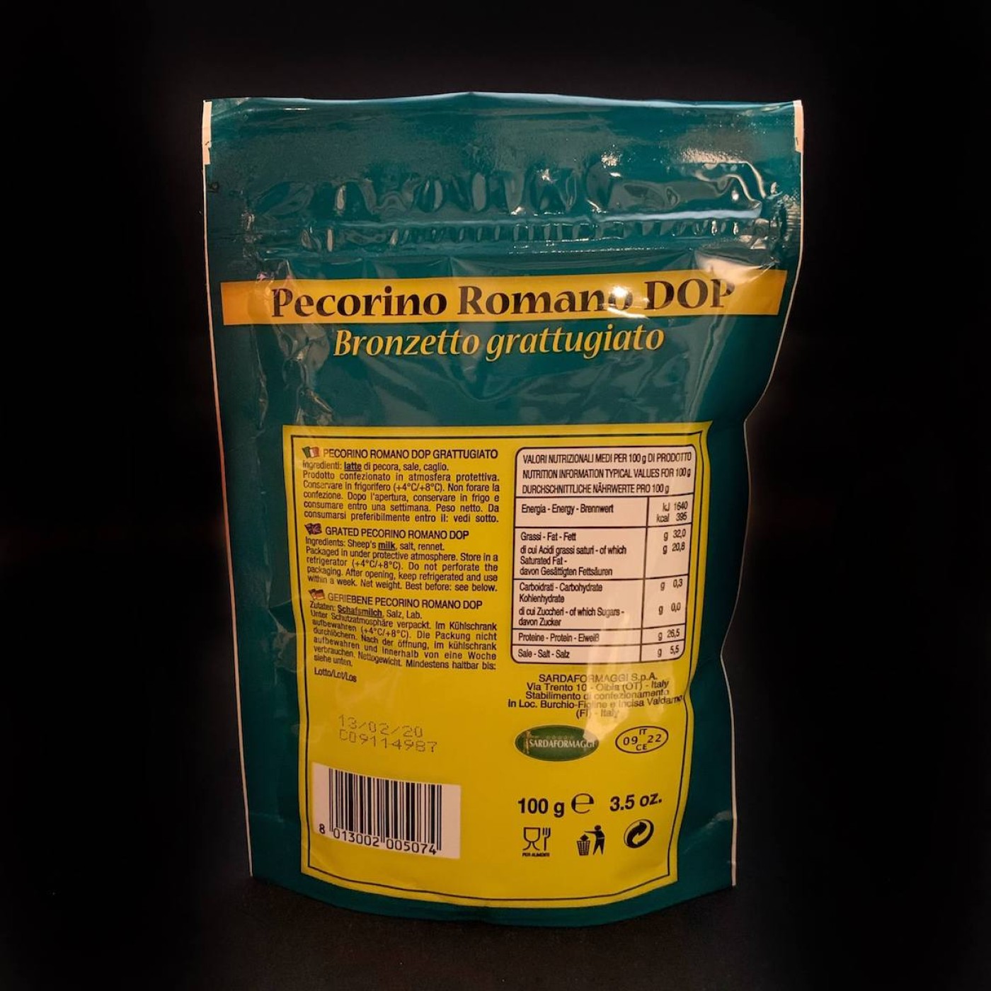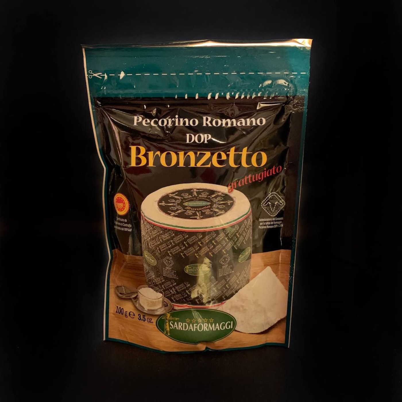 Bronzetto Pecorino Romano Dop – це молодий та твердий овечий сир у тертому вигляді, який вважається одним з найбільш популярних сирів в Італії. Пекоріно Романо має світло-жовтий колір та насичений смак з солоною і пряною ноткою. Він корисний, містить амінокислоти, вітаміни та мінеральні речовини.