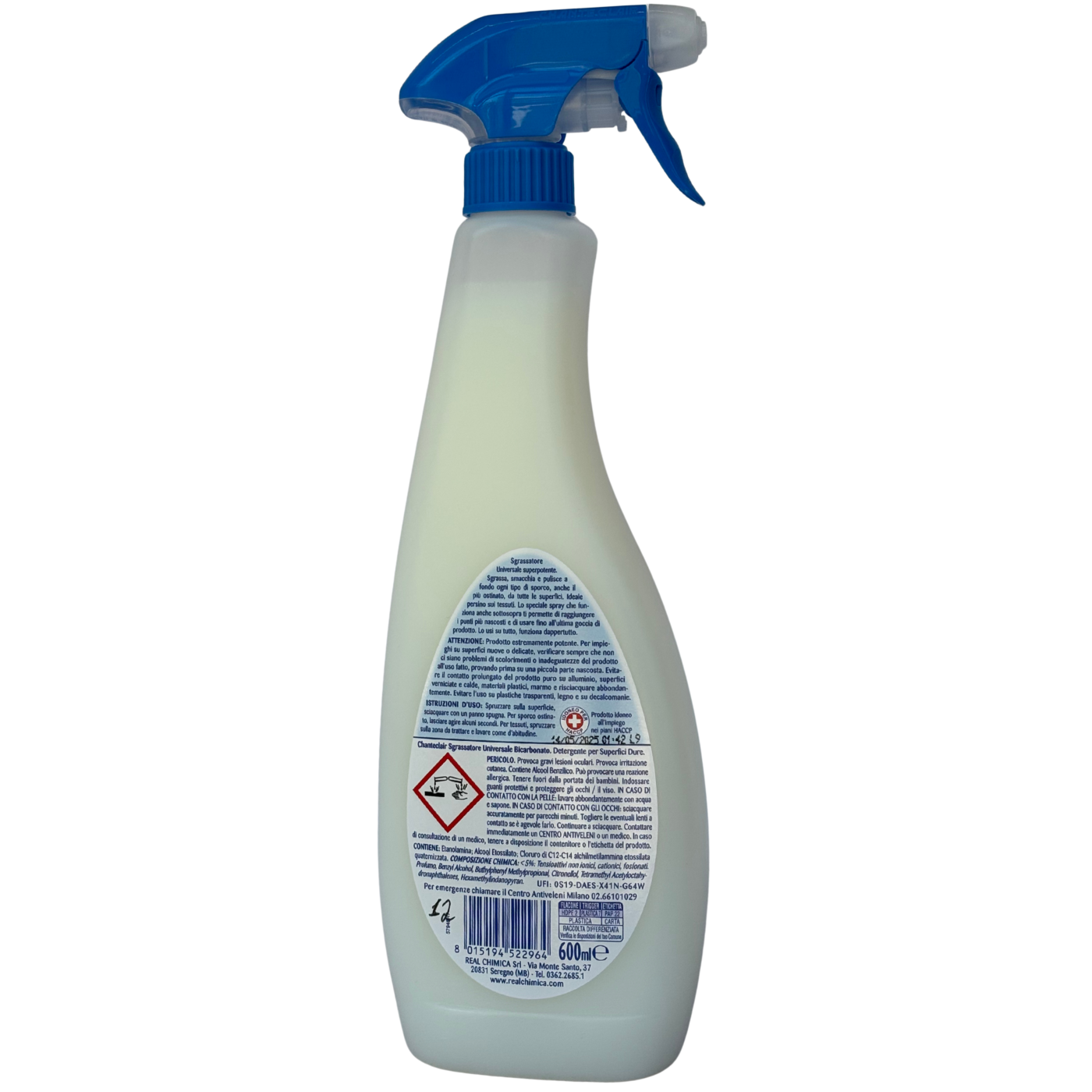 Універсальний засіб для чищення в спреї з бікарбонатом Sgrassatore universale con Bicarbonato Chante Clair - це ефективний домашній очищувач для щоденного використання, який допомагає швидко і легко видаляти жир, плями та забруднення на різних твердих поверхнях. Завдяки додаванню бікарбонату засіб делікатно очищує поверхні, не пошкоджуючи їх, одночасно освіжаючи приміщення та залишаючи приємний аромат. Підходить для кухні, ванної кімнати, робочих поверхонь і інших місць у домі, забезпечуючи чистоту, безпеку та гігієну у вашому житловому просторі.