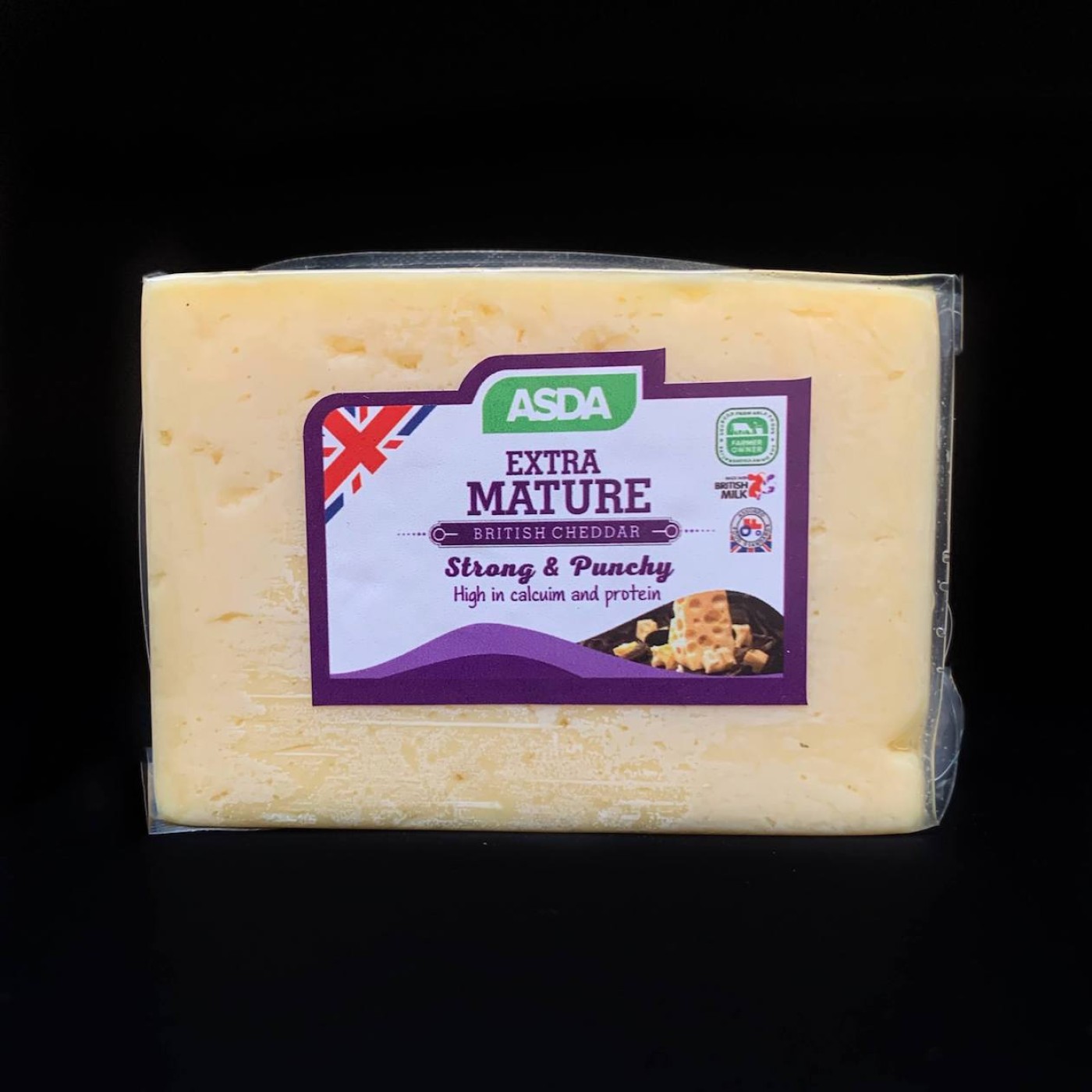 Спробуйте справжній сир Чеддар з Великобританії – Extra Mature від Asda. Це витриманий напівтвердий сир, виготовлений з коров’ячого молока. Він витримується до 15 місяців, тому має насичений смак з ледь відчутною кислинкою та особливим горіховим післясмаком. Не містить штучних барвників та ароматизаторів і багатий на білок та кальцій.