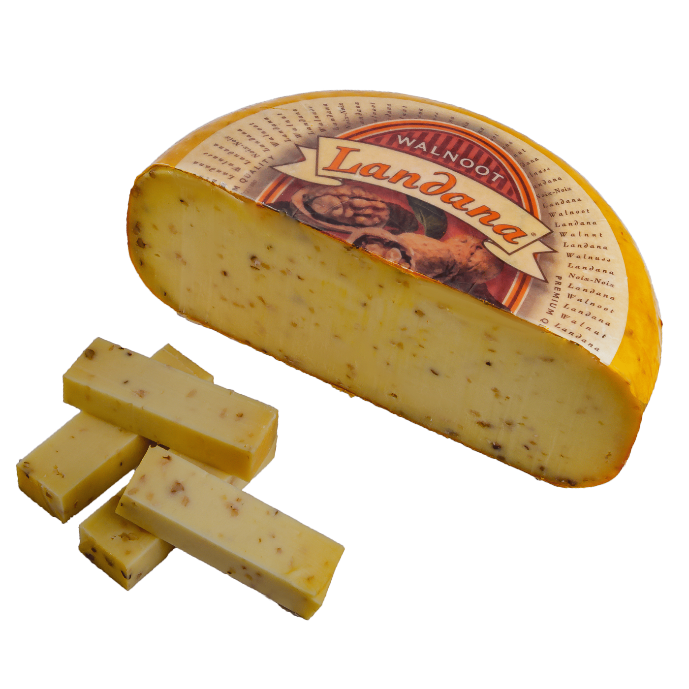 Landana walnoot дарує особливі відчуття завдяки поєднанню вершкового смаку з грецькими горіхами, шматочки яких містяться всередині. Він має однорідну та ніжну текстуру, витримується не більше двох місяців, тому подарує делікатний смак. Продукт від голландського виробника подарує корисні речовини, адже він багатий на вітаміни та мінеральні речовини. Ландана з горіхами – однозначно вдалий вибір для додатку до вина, де він найкращим чином розкриє свої смакові якості. Також він підходить для перекусу протягом усього дня, коли необхідно швидко підкріпитись.