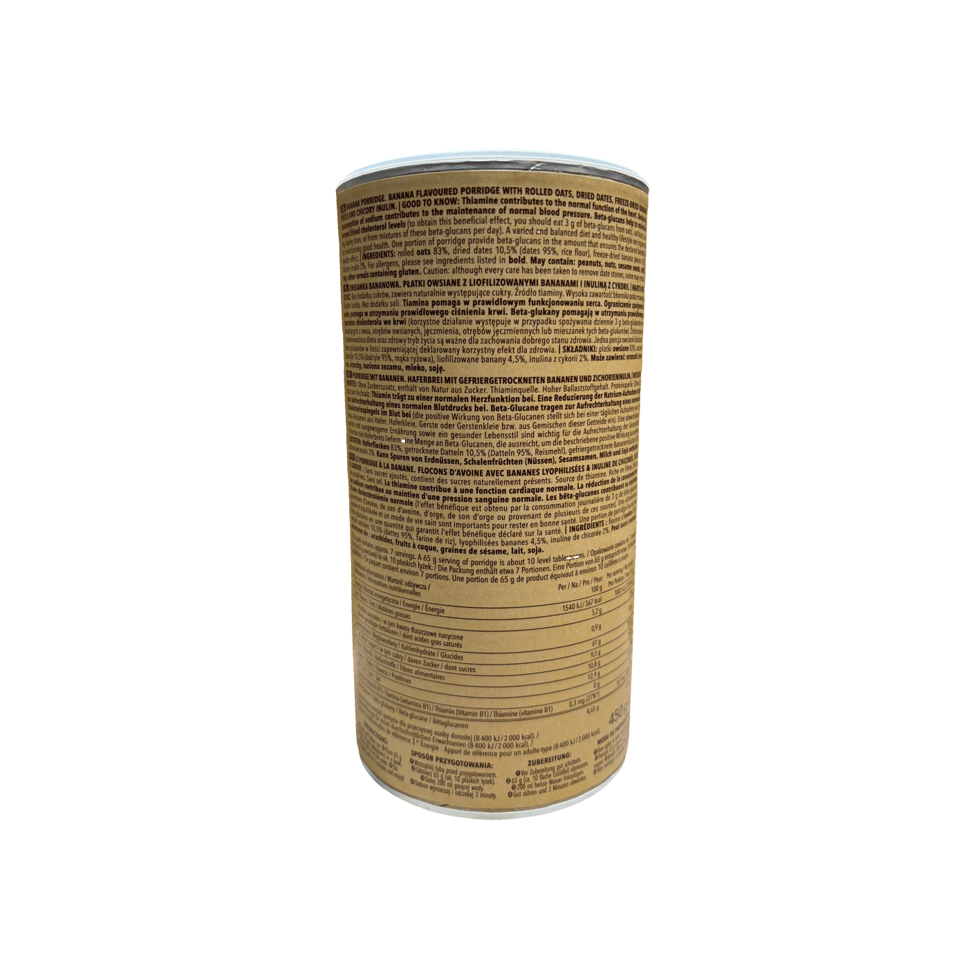Смачний, корисний та поживний сніданок. Вівсяна каша з бананом, сушеним фініком та інуліном їз цикорію не містить цукру та солі, є веганським подуктом. В складі лише натуральні цукри отримані з фруктів. Ідеальний продукт для тих, хто слідкує за своїм тілом, адже у ньому високий вміст клітковини, протеїну, тіаміну та бета-глюканів. Отож отримуйте гору користі та енергії від сніданку.