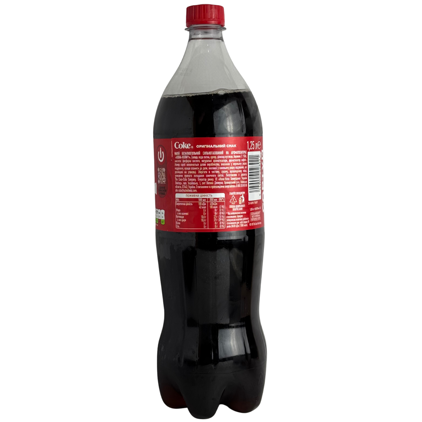 Напій Coca-Cola об'ємом 1,25 л — це класичний сильногазований безалкогольний напій, а не вода. Він відомий своїм оригінальним смаком, що поєднує солодкість та легку кислинку.